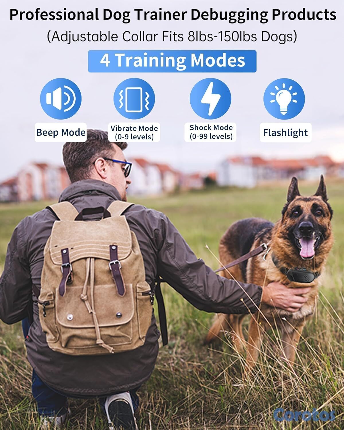 Collar de adiestramiento con control remoto, diseñado para perros pequeños, medianos y grandes (3,6 a 68 kg). Ofrece modos humanitarios de linterna, pitido, vibración y descarga ajustable, adaptándose al temperamento de cada mascota. Con un alcance de 610 metros, permite entrenar en casa, parques o senderos, incluso a varios perros gracias a su soporte de doble canal. Es 100% impermeable (IPX7), resistente y confiable en cualquier clima. Su batería dura más de 35 días con solo 2 horas de carga rápida.