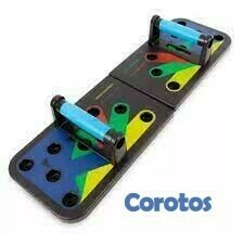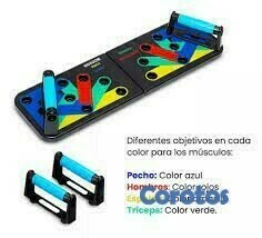 Completo tablero plegable para realizar flexiones según el músculo que se desea trabajar. Cuenta con un sistema de colores que indica cómo se debe realizar el ejercicio según la parte del cuerpo a tonificar.