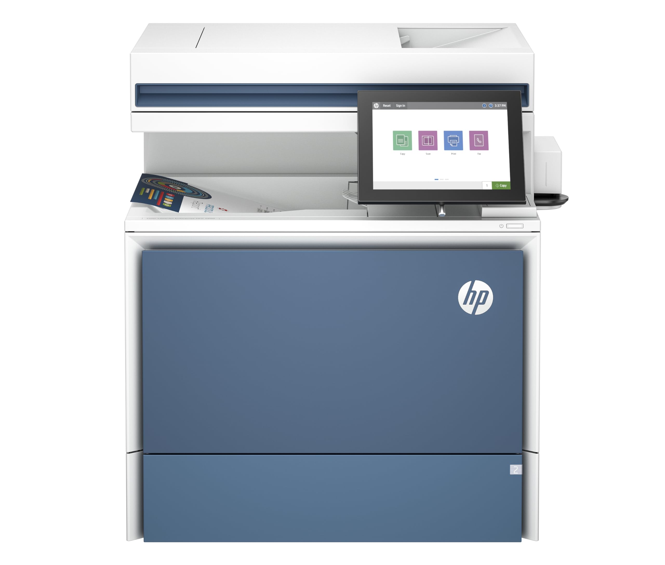 Características clave: impresión, copia, escanea (opcional: fax), además de capacidades móviles e inalámbricas sin bordes. Imprime hasta 45 páginas por minuto en negro y 43 páginas por minuto a color.