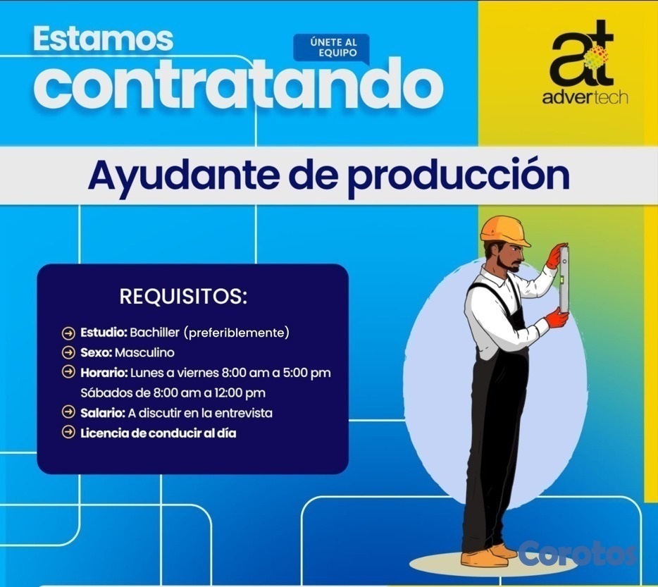 Estamos contratando Auxiliar de producción.