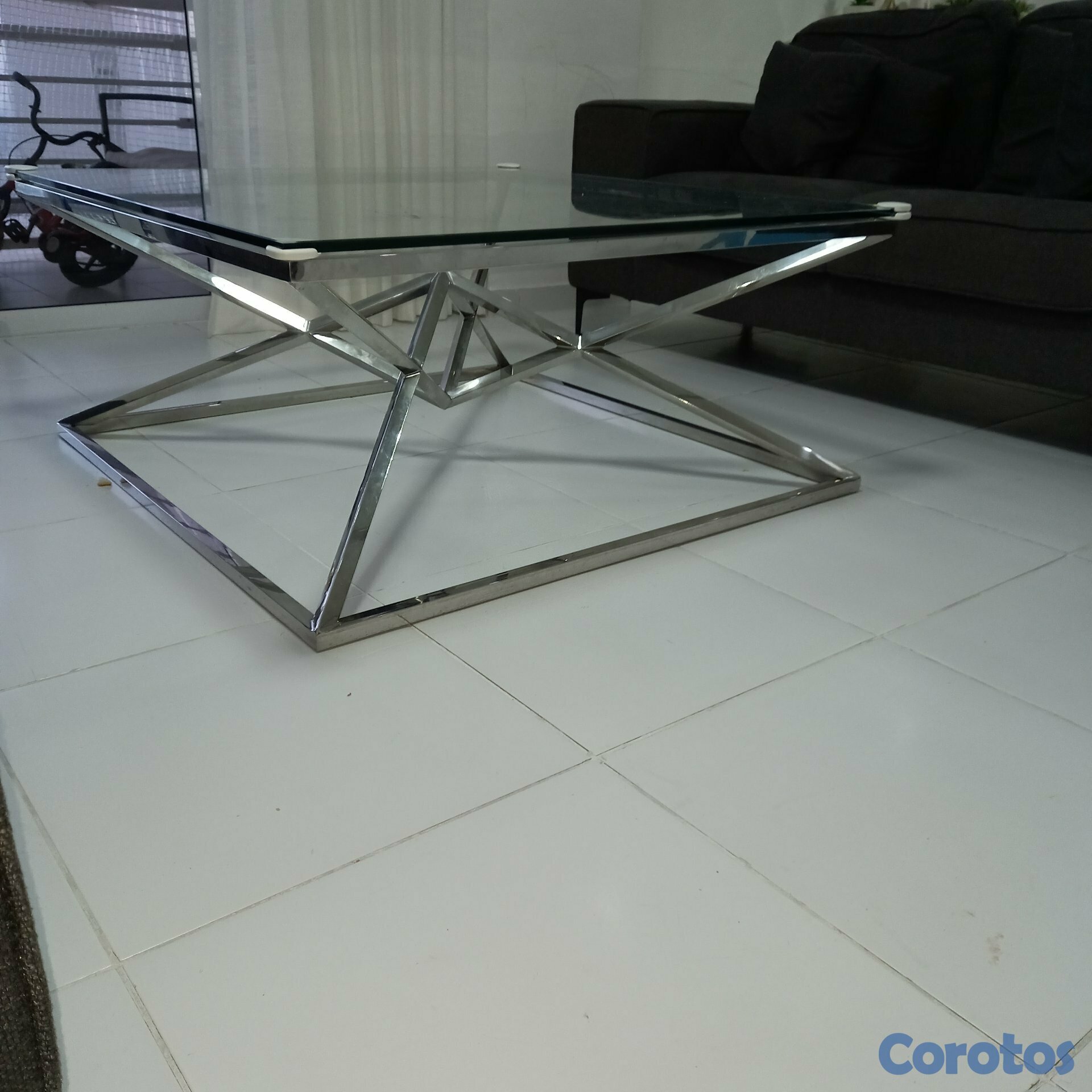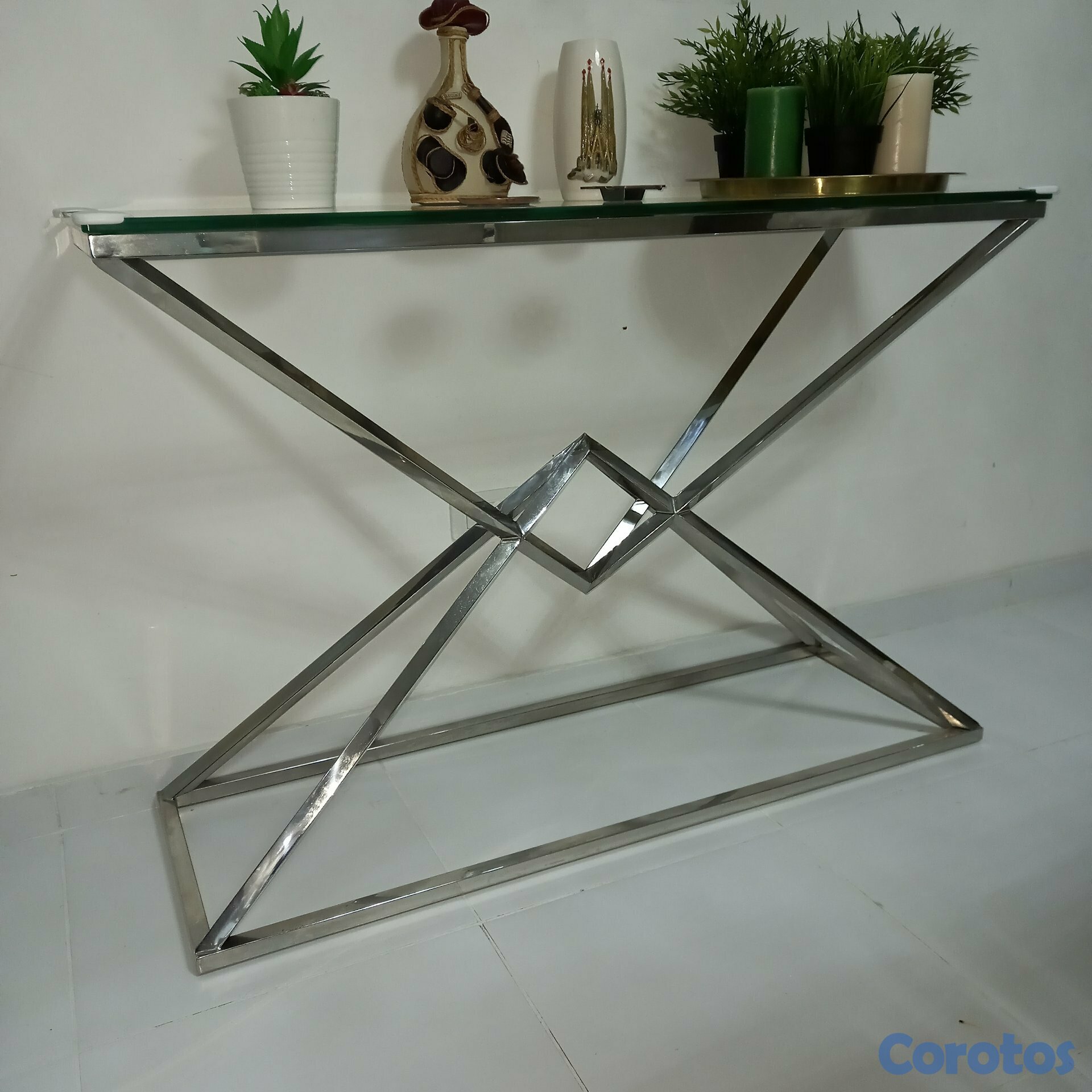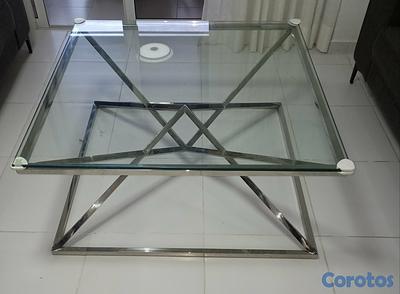 Mesa de centro y repisa color platado en metal coi