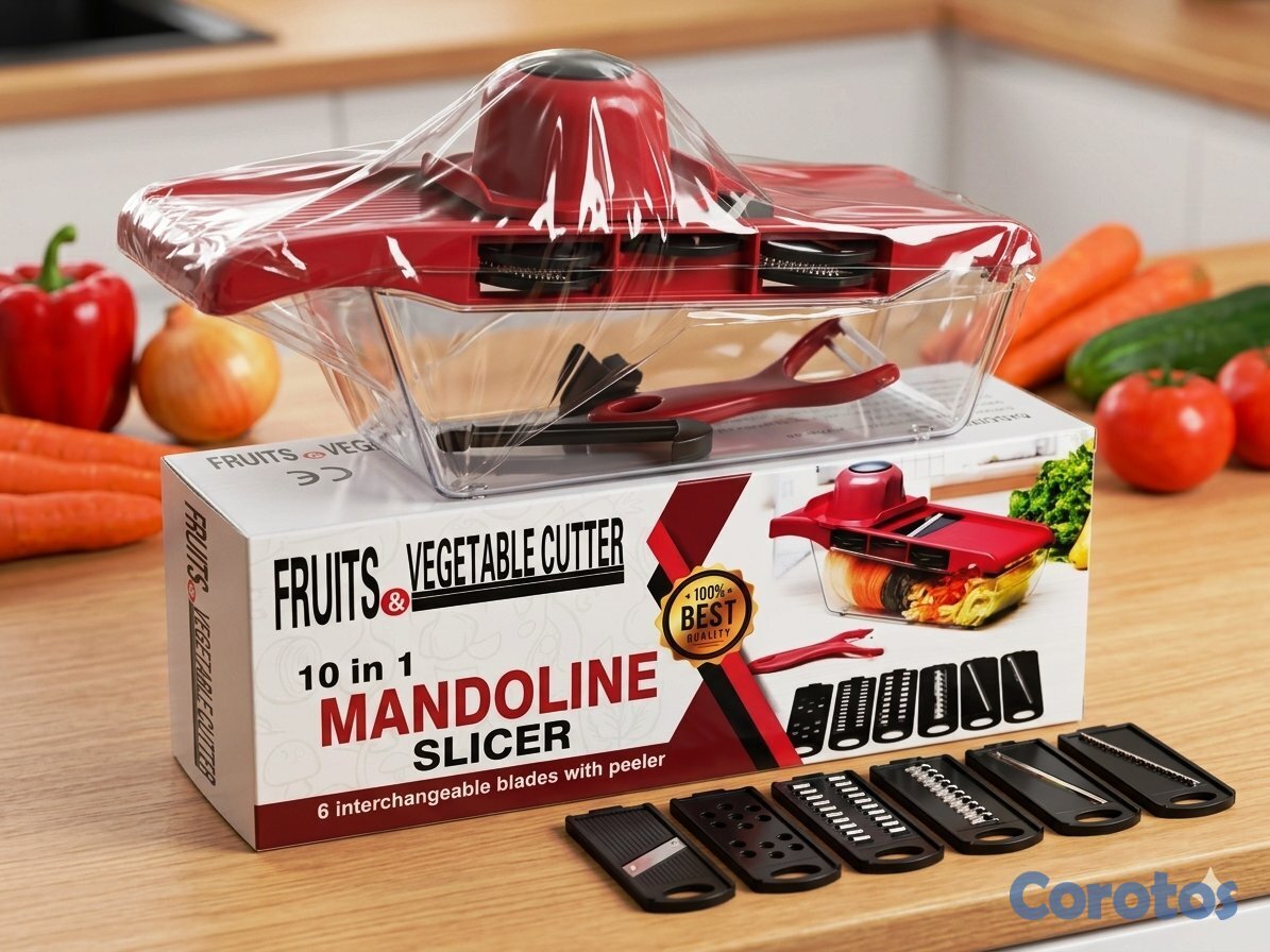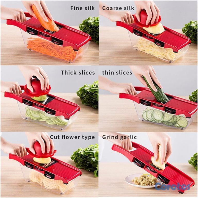 ¡Tu cocina necesita este aliado! ⚡️ Olvídate de pasar horas picando; con nuestra Mandolina Multifuncional 9 en 1, preparar tus platos favoritos será cuestión de segundos.