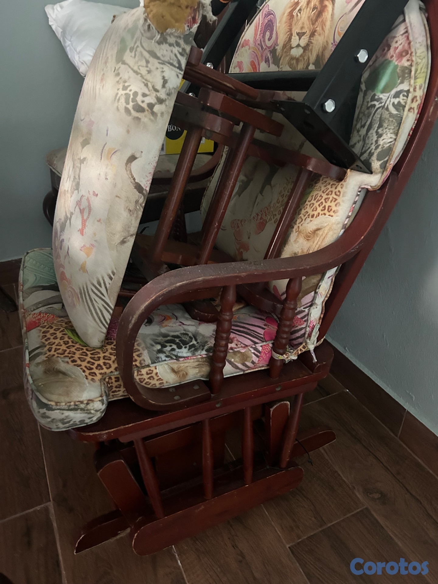 Ideal para decoración estilo campo. Tiene 5 sillas, dos sillones, un mueble y una mesita.