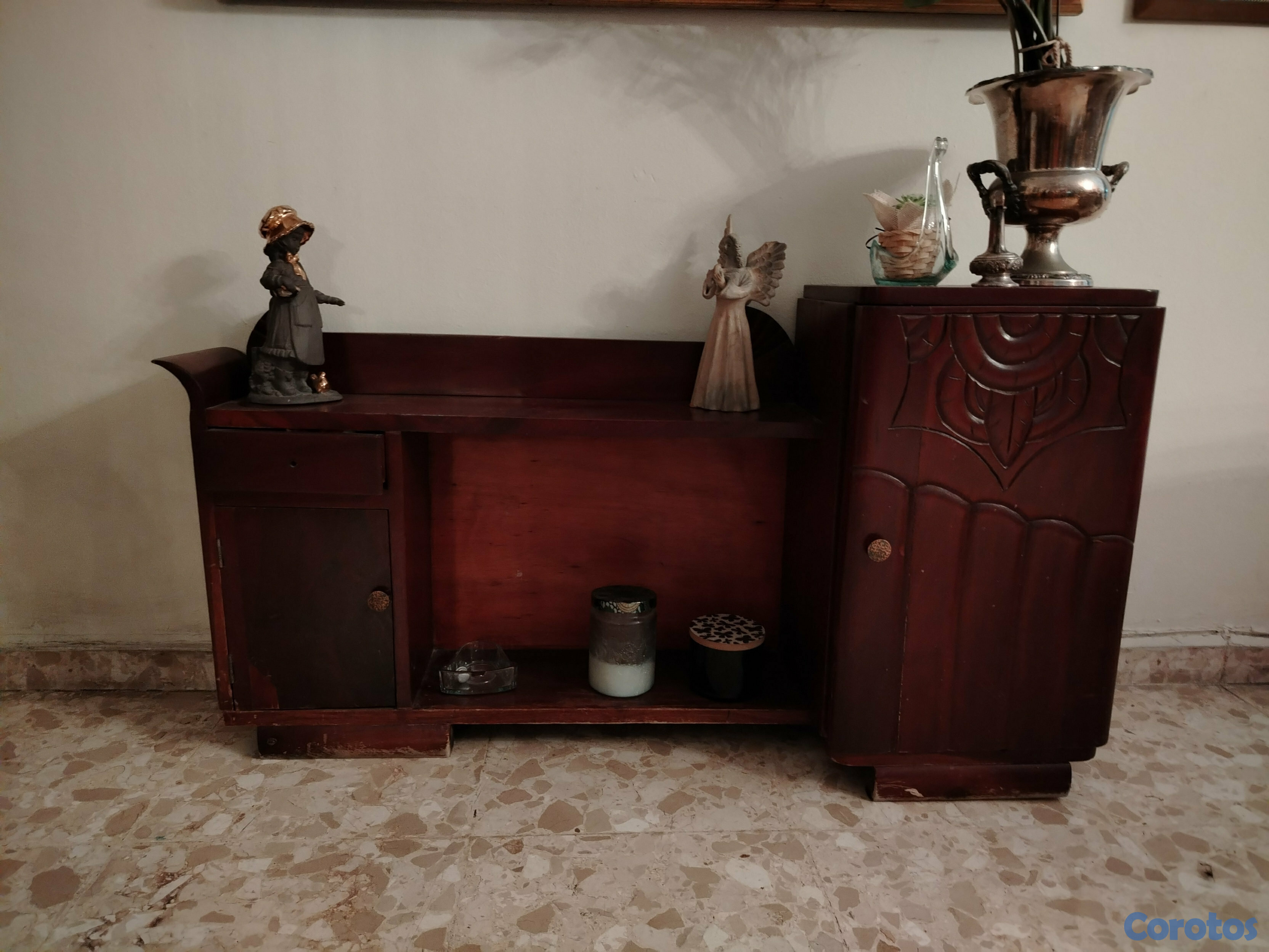 Tocador antiguo en caoba, tallado.