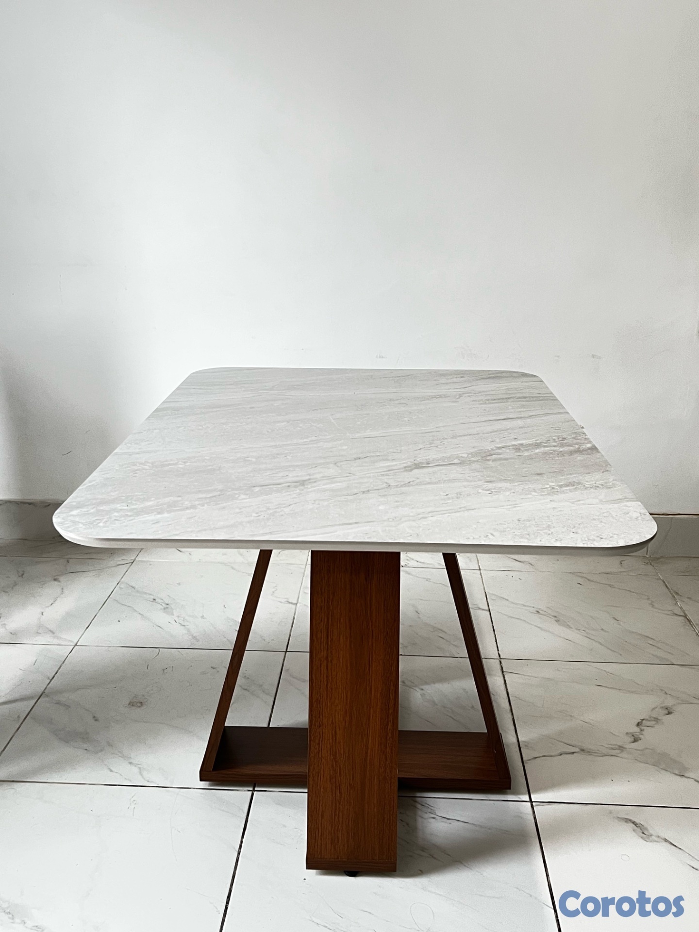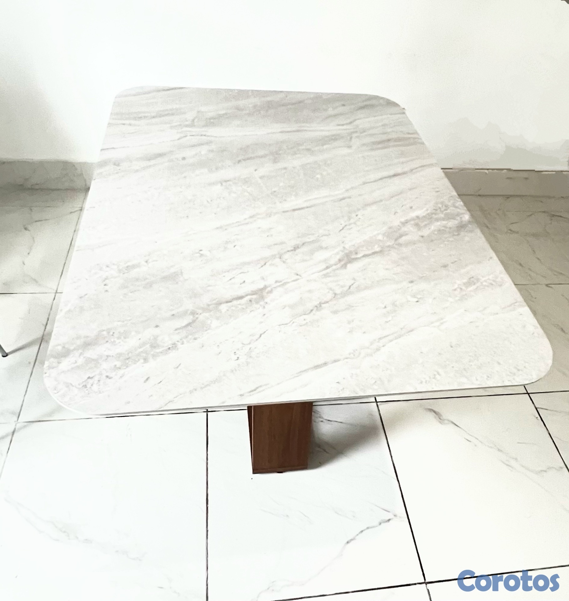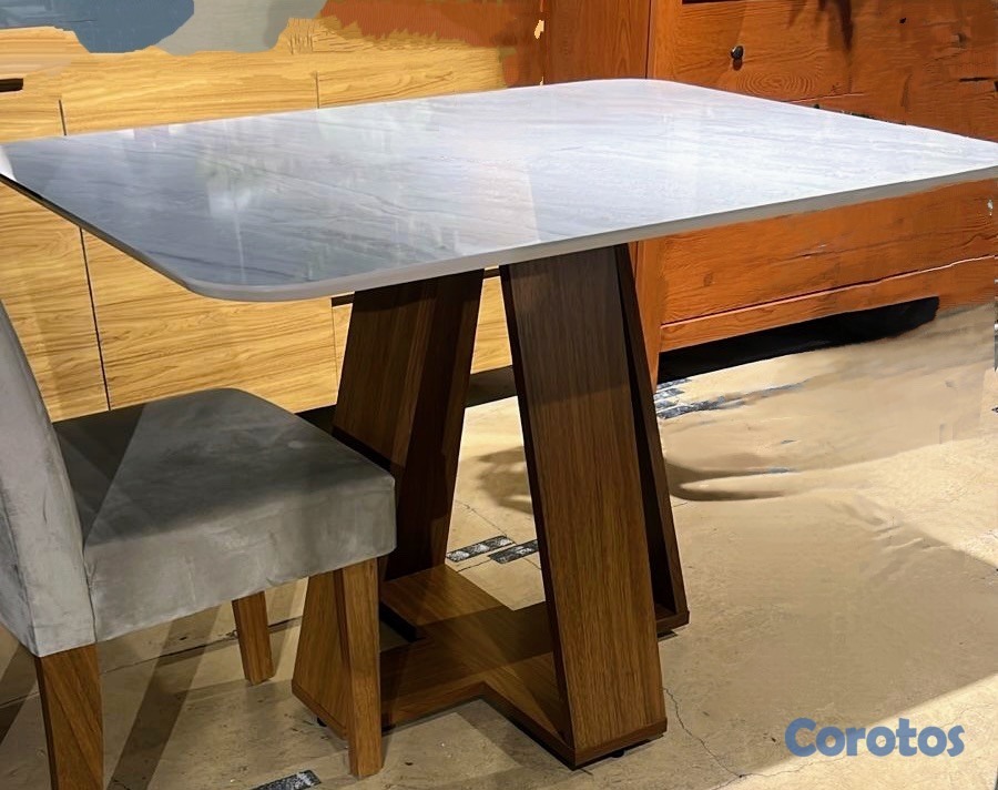 Hermosa mesa de 6 sillas con base de madera y tope tipo mármol