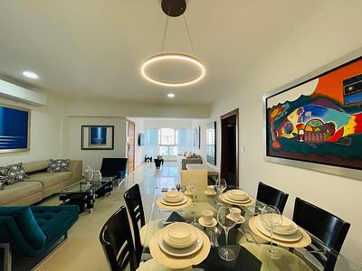 Alquiler Amueblado de moderno, elegante y acogedor apto. En piso 11 , con todo el confort que te mereces con 2 habitaciones, 2.5 baños, cada habitación con sus baños más baño de visitas, sala/comedor, cocina, área de lavado, cuarto de servicio, aires acondicionados, calentador de agua, área comun, gym, salón de eventos, planta eléctric, portón eléctric, cámaras y seguridad 24 horas