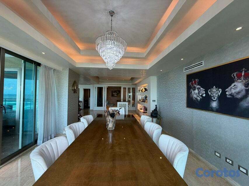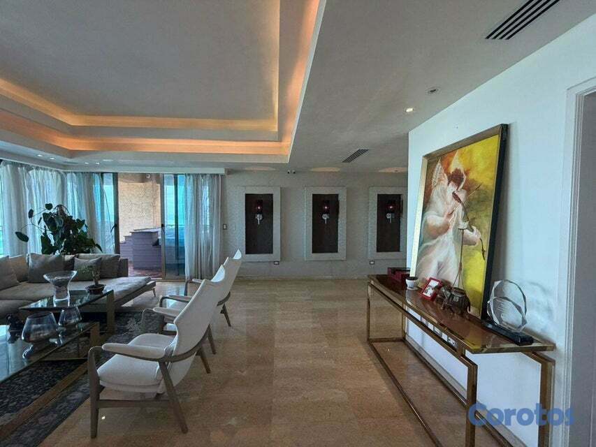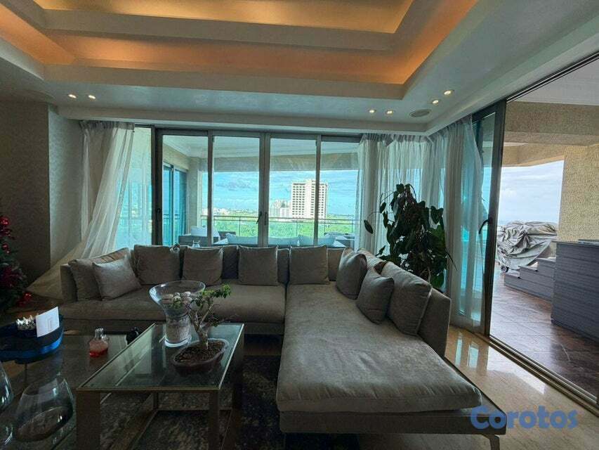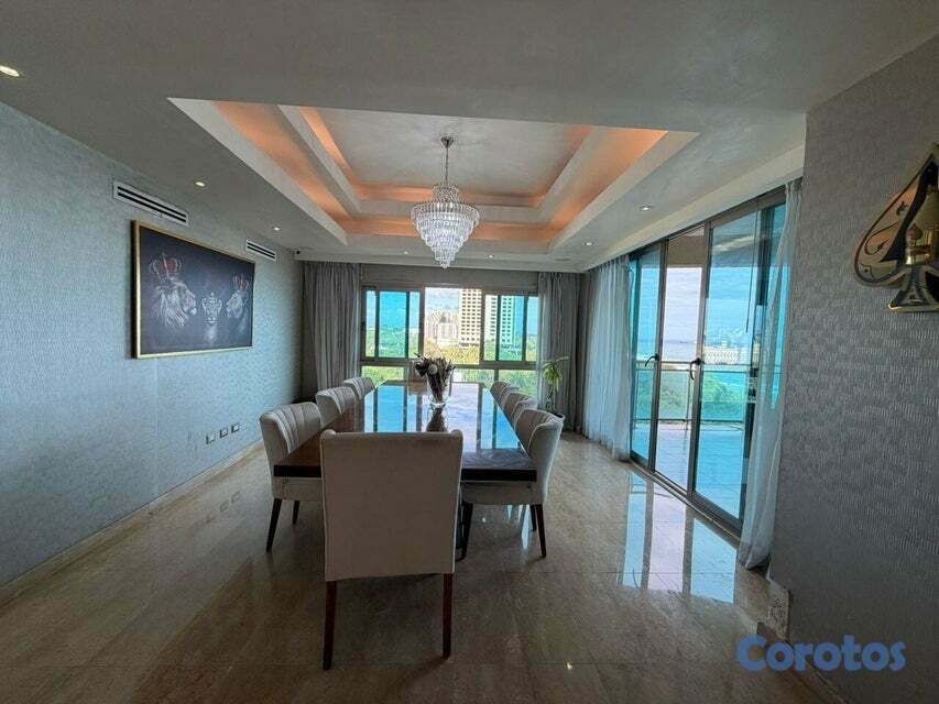 Vive frente al mar 🌊✨ 400 m² de puro lujo 3 habitaciones + alcoba + servicio Cuarto de juegos 🎮 + oficina privada 💼 Terraza con jacuzzi 🛁 y vista infinita Torre 5⭐ con piscina, gym y centro comercial Ubicación top en el complejo del Hotel Catalonia 📍 Todo cerca: restaurantes, farmacia, colmado y más