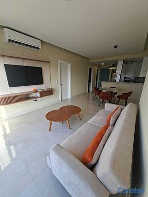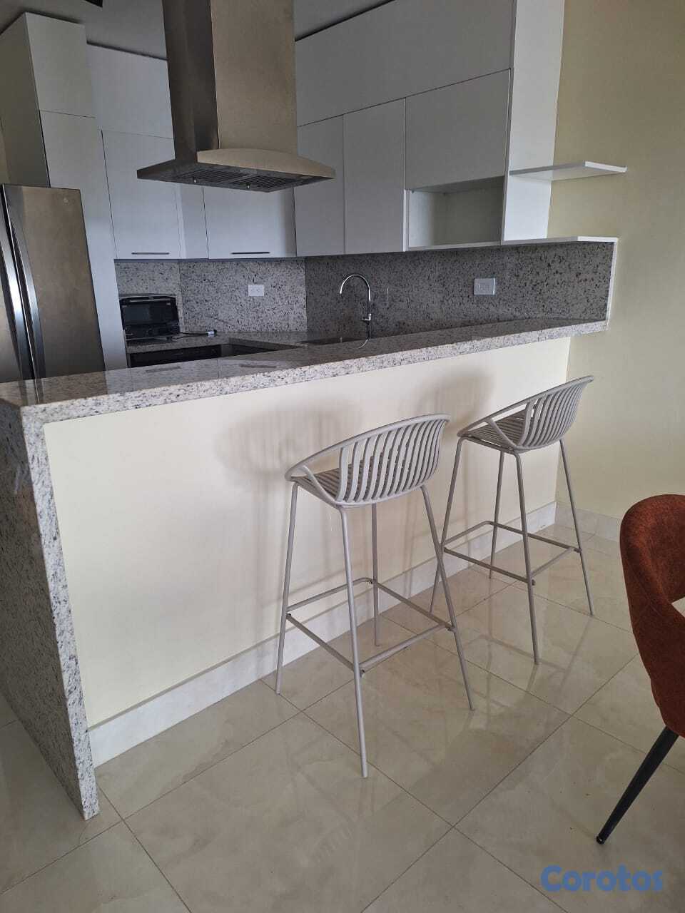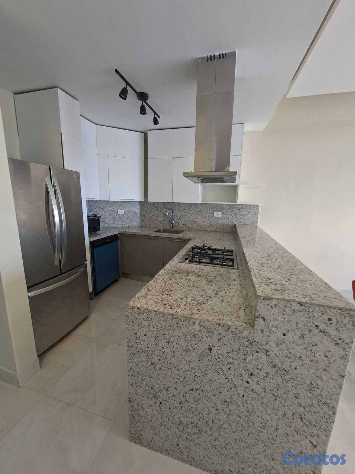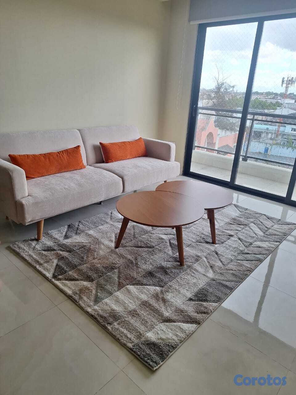 Se alquila apartamento de 1 habitación amueblado en Los Cacicazgos. Cuenta con línea blanca; 2 aires, nevera, estufa, lavaplatos, horno eléctrico, torre de lavadora/secadora, televisión, entre otros detalles. 1 parqueo techado.