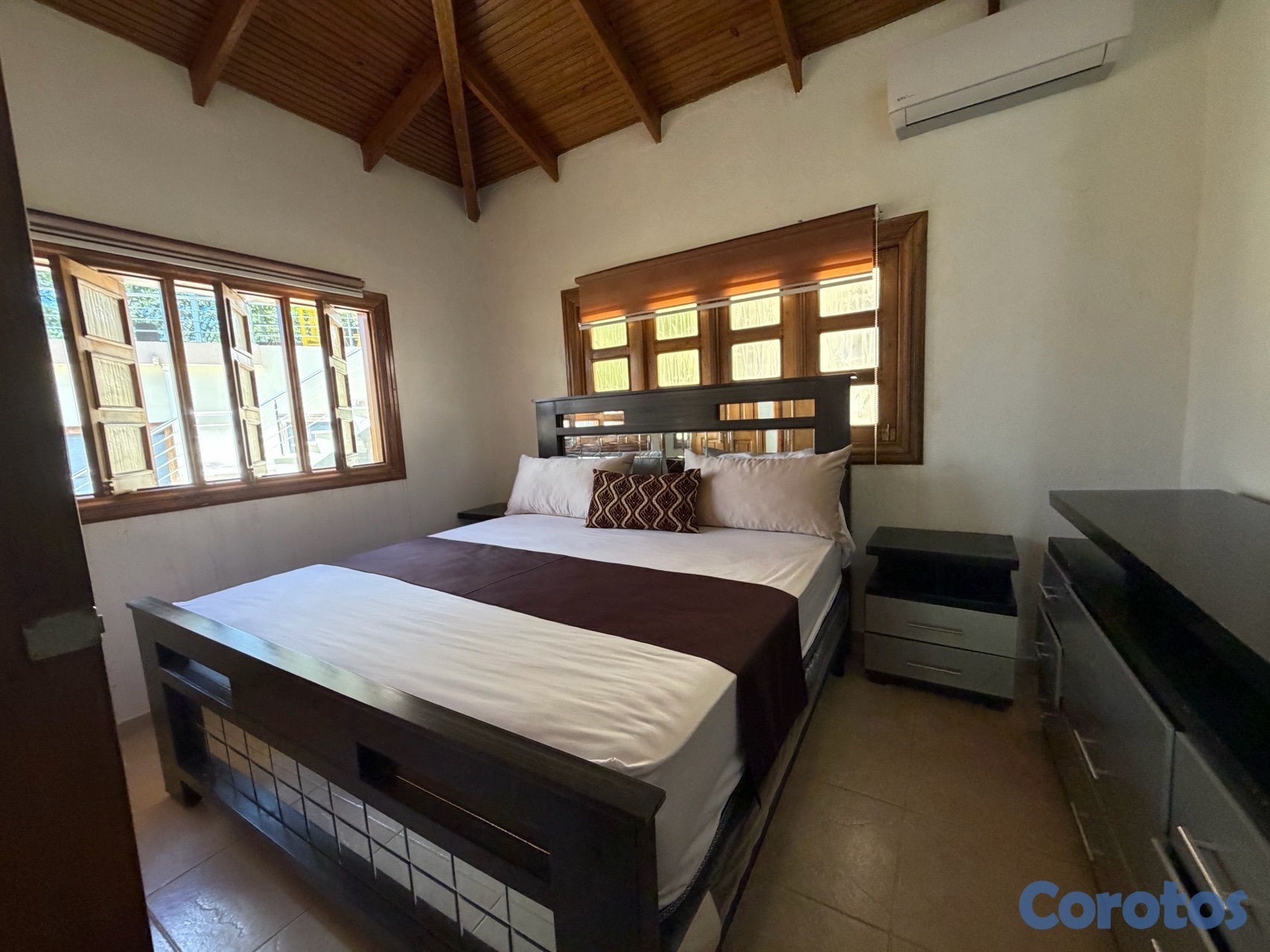 Tamaño y distribución**: tres habitaciones por villa, cada una con dos baños.