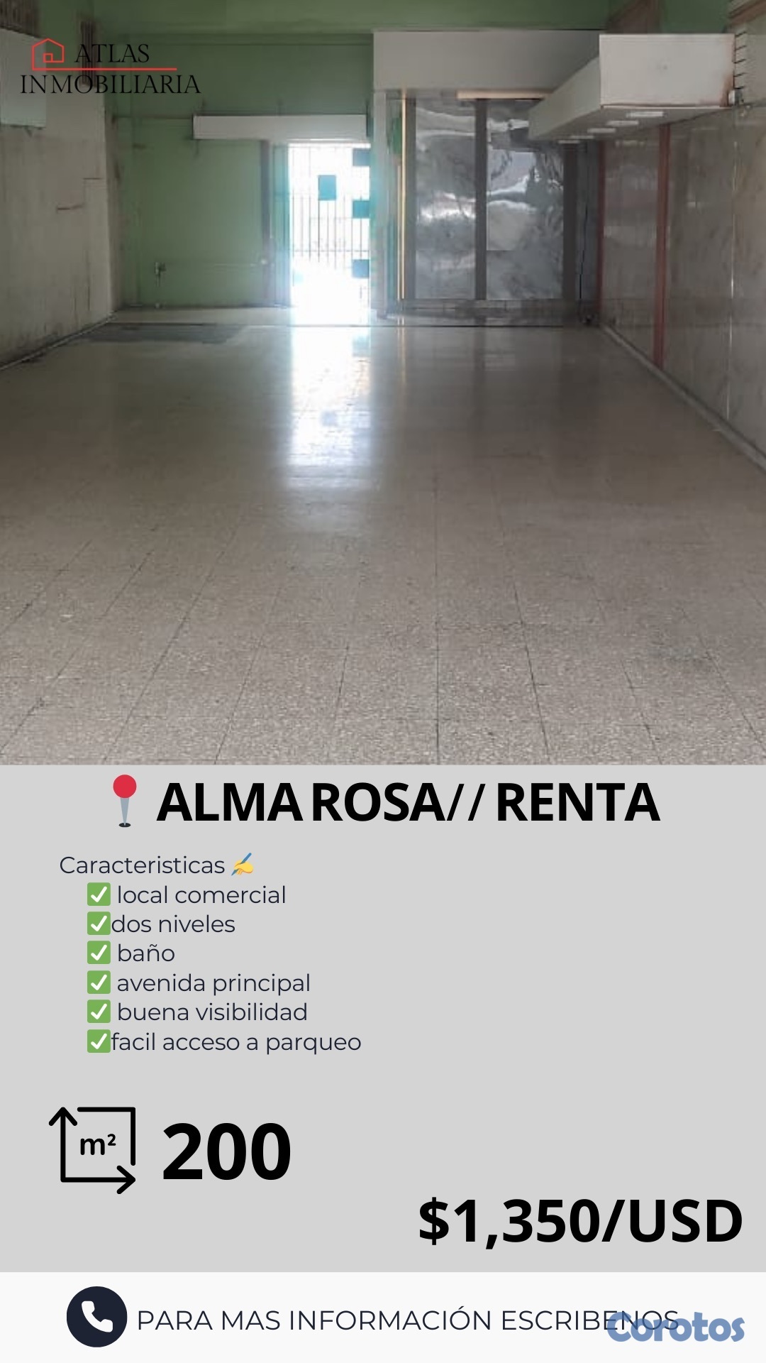 ▪️Local 2 niveles con escalera en el interior, 200 mts2.