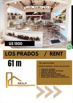 Excelente local comercial en primer nivel con Terraza en zona céntrica y comercial d los prados , ideal para proyectos de Reposteria, jugos naturales , cafeterías con proyectos de comida lijera , o proyectos de cocina saludable .