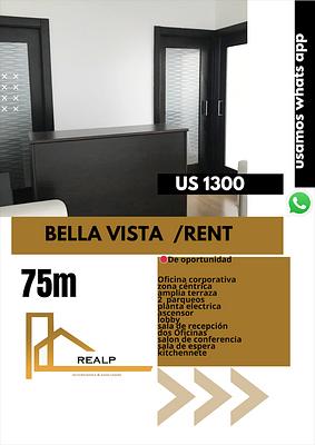 Local Amueblado de 75 metros, con recepción y sala de espera, 2 oficinas, Sala de conferencias y kitchenette, baños (hombre y mujer) cocina común en el piso.