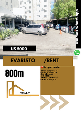 Excelente solar con buen tamaño , espacio abierto con oficina y almacén , zona altamente céntrica y transitada ; buena visibilidad comercial , buen frente ideal para Dealer, canchas de Paddle, foodtruck, taller y alamacenamiento , ferreterías etc .