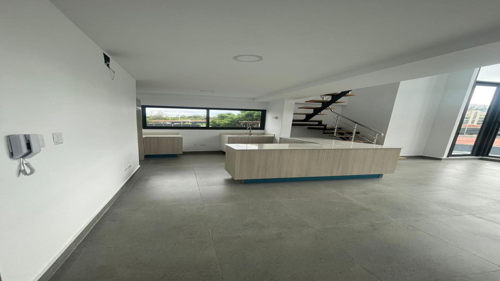 (EG)Este moderno apartamento  tipo loft de una habitación con dos niveles y un baño está ubicado en el prestigioso sector Ensanche Naco de Santo Domingo de Guzmán. Con 72 metros cuadrados de construcción y 84 metros cuadrados de terreno, ofrece un espacio cómodo y funcional. La propiedad incluye un parqueo, lo que añade conveniencia a su ubicación céntrica. Ideal para quienes buscan vivir en una zona vibrante.Incluye: Terraza social con piscinaSala socialGimnasio equipadoArea de lavanderiaEbanisteria en madera preciosaCocina modulares
