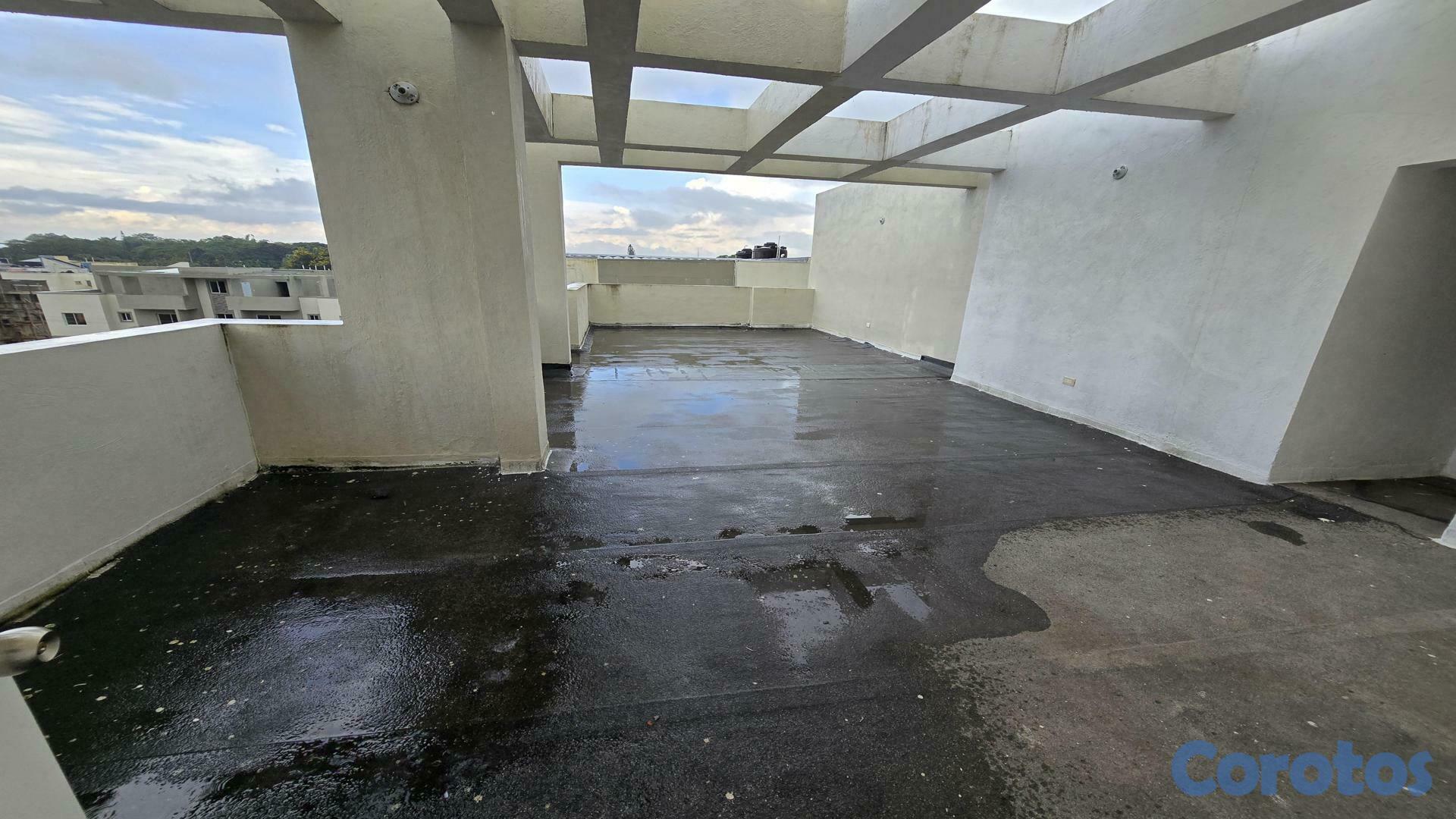 Apartamento 4to piso con Terraza Privada detrás de la embajada americana, a 1 minutos de la Republica de Colombia y 3 minutos de la Jacobo Majluta4to piso con terraza ( no tiene ascensor)3 habitaciones2 baños2 parqueo LinealesSala comedorCocinaHabitacion de servicioArea de lavadoBalconTerraza privada con Preinstalación para baño 60mt2 aprox106mt2 de apartamento60mt2 de TerrazaResidencial cerrado con seguridadGas comunMantenimiento 2500Precio US$125,000