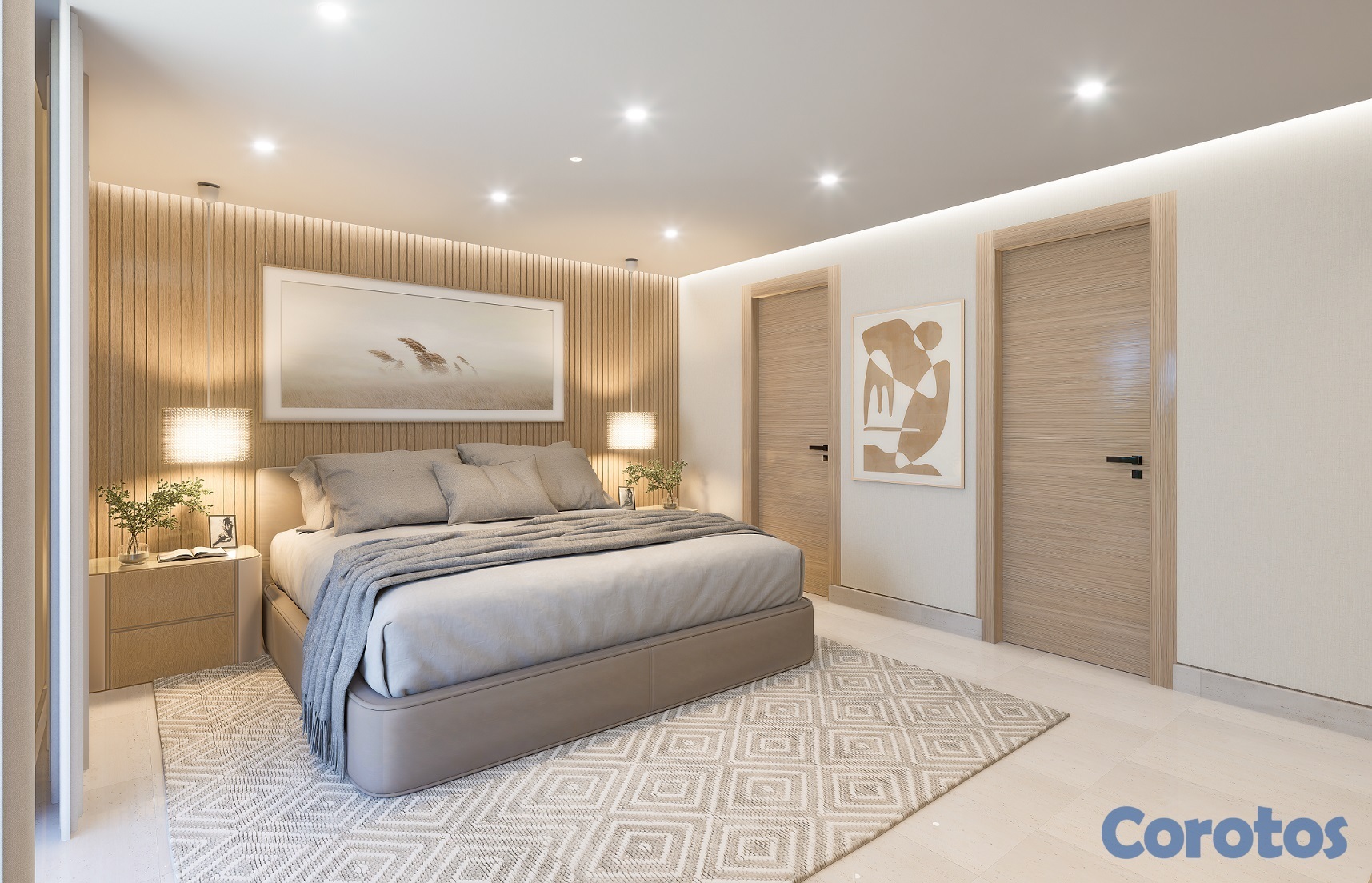 Puertas principales en madera preciosa, interiores enchapados en melamina.