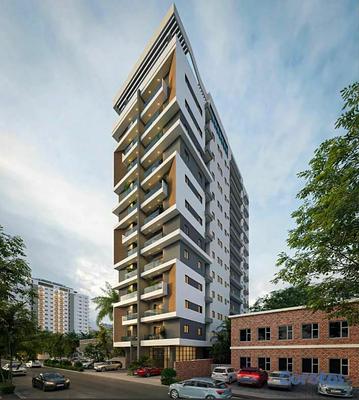 Proyecto conformado por un edificio de trece niveles y cuatro niveles de parqueos soterrados, con un total de cuarenta y seis (46) exclusivos apartamentos de tres (03) y dos (02) habitaciones con metrajes netos desde 97 hasta 184 metros cuadrados, con uno (1) y dos (2) parqueos techados e independientes, estando distribuidos desde el nivel 02 al nivel 13, con cuatro tipos de apartamentos en cada uno de ellos.