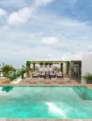 Características de 3 Habitaciones Tipo PH-B (192.46+63.19m2)*: Tres niveles, metrajes netos de apartamentos, 3 parqueo+ 1 parqueo retrancado. Nivel 13: área de techo privada con baño y pre-instalación para jacuzzi.