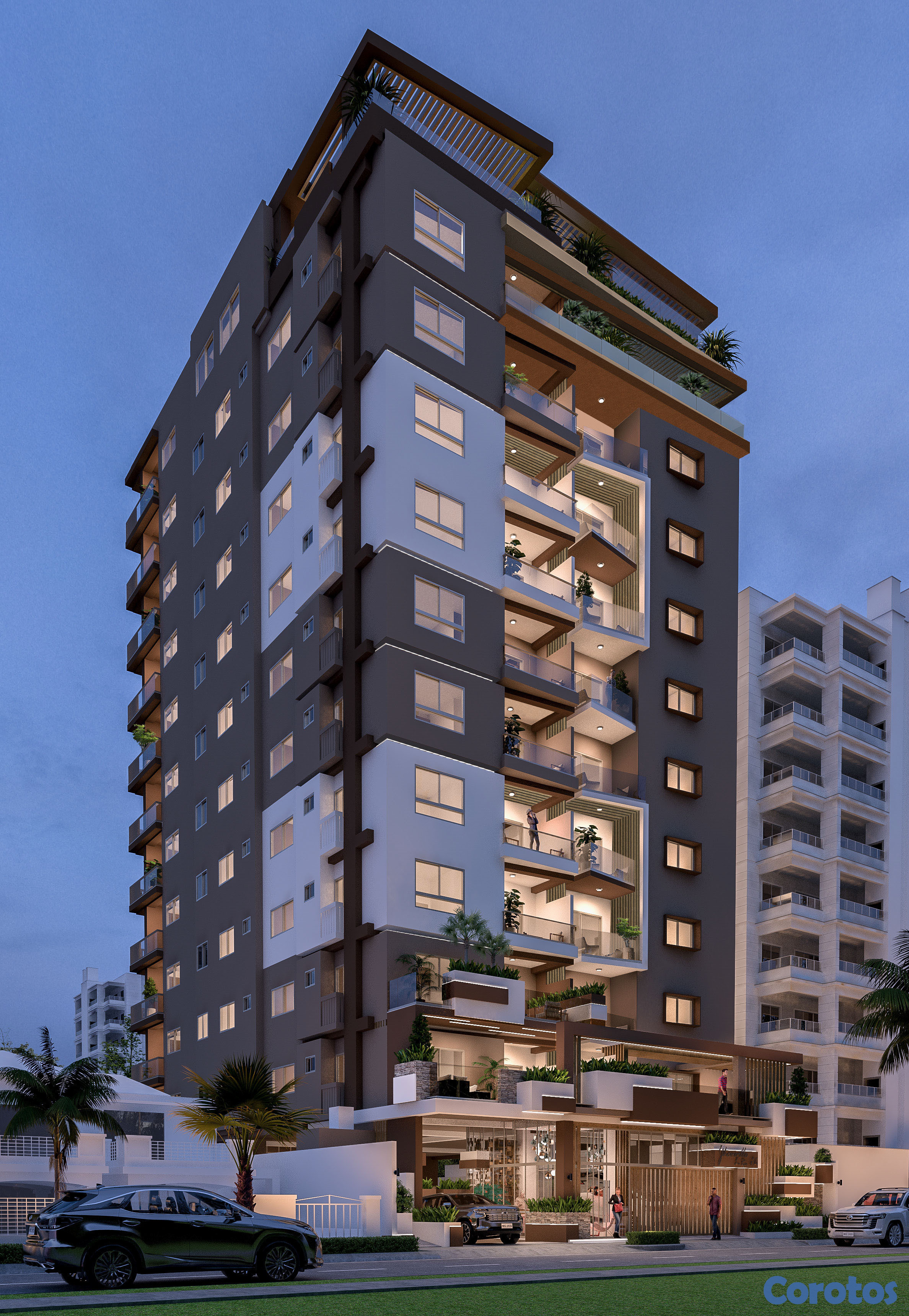 - 13 niveles, 3 apartamentos por nivel
