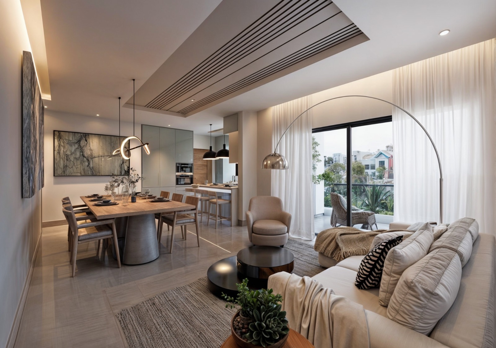 Sala y comedor con detalles en corniza y yeso