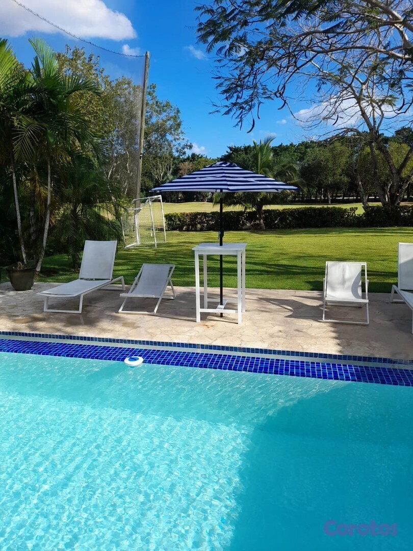 Está peculiar Villa cuenta con una hermosa vista panorámica al campo de golf del afamado y exclusivo club de golf de Metro Country Club en Juan Dolio.