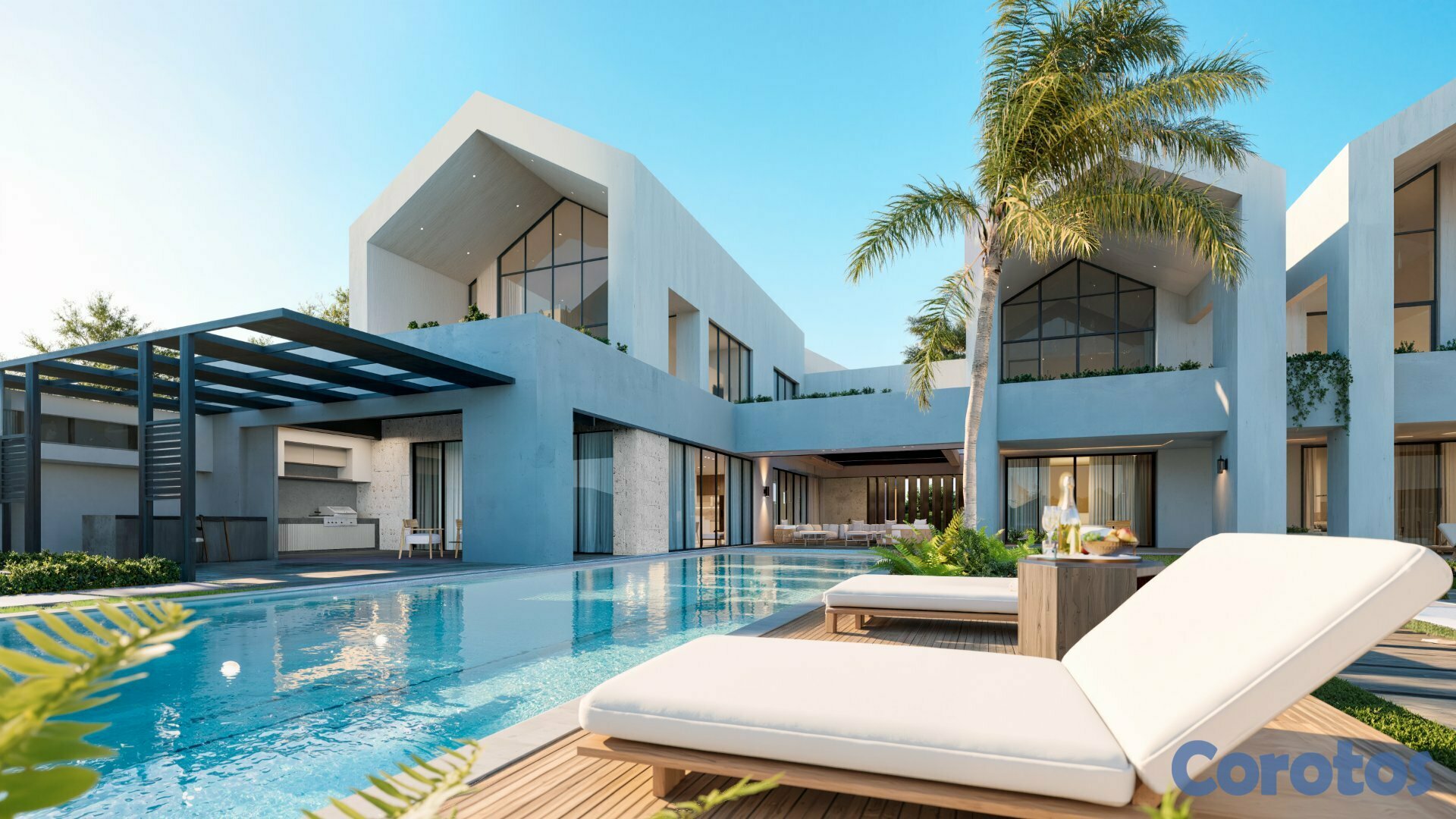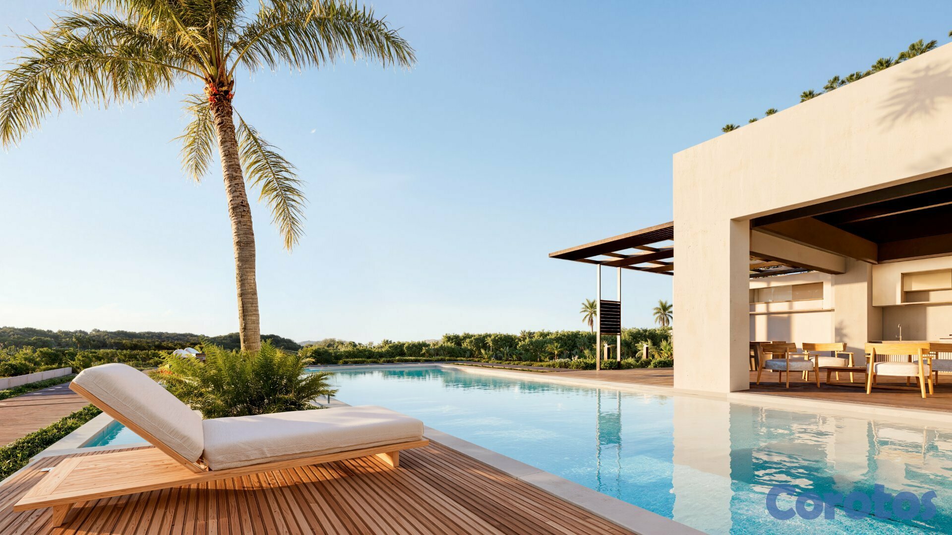 Es una villa lujosa en la exclusiva comunidad de Cap. Cana. Esta villa está construida en un estilo caribeño con revestimiento de hormigón y madera, y cuenta con techos a dos aguas típico de la arquitectura tropical, dándole imponencia y grandeza.