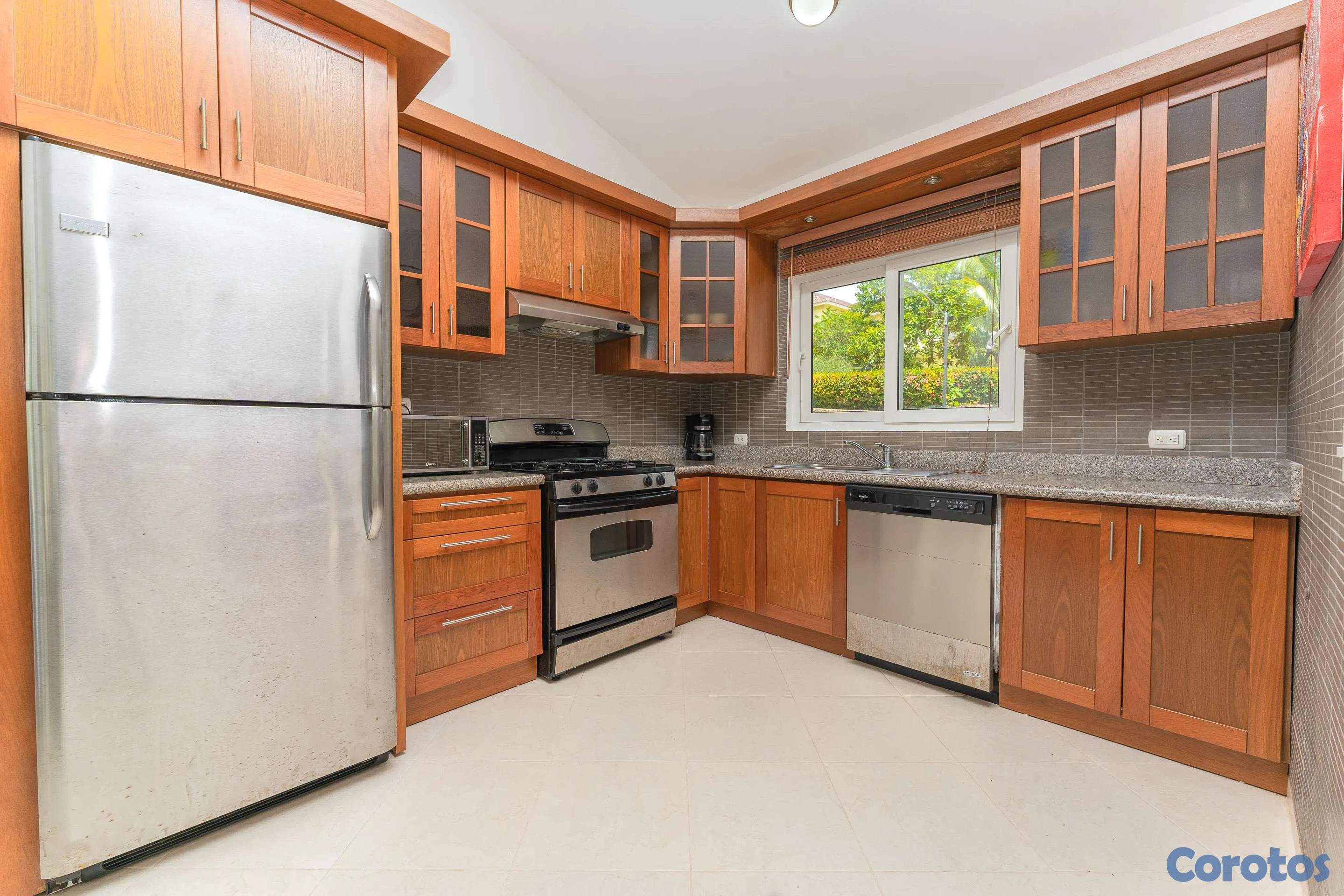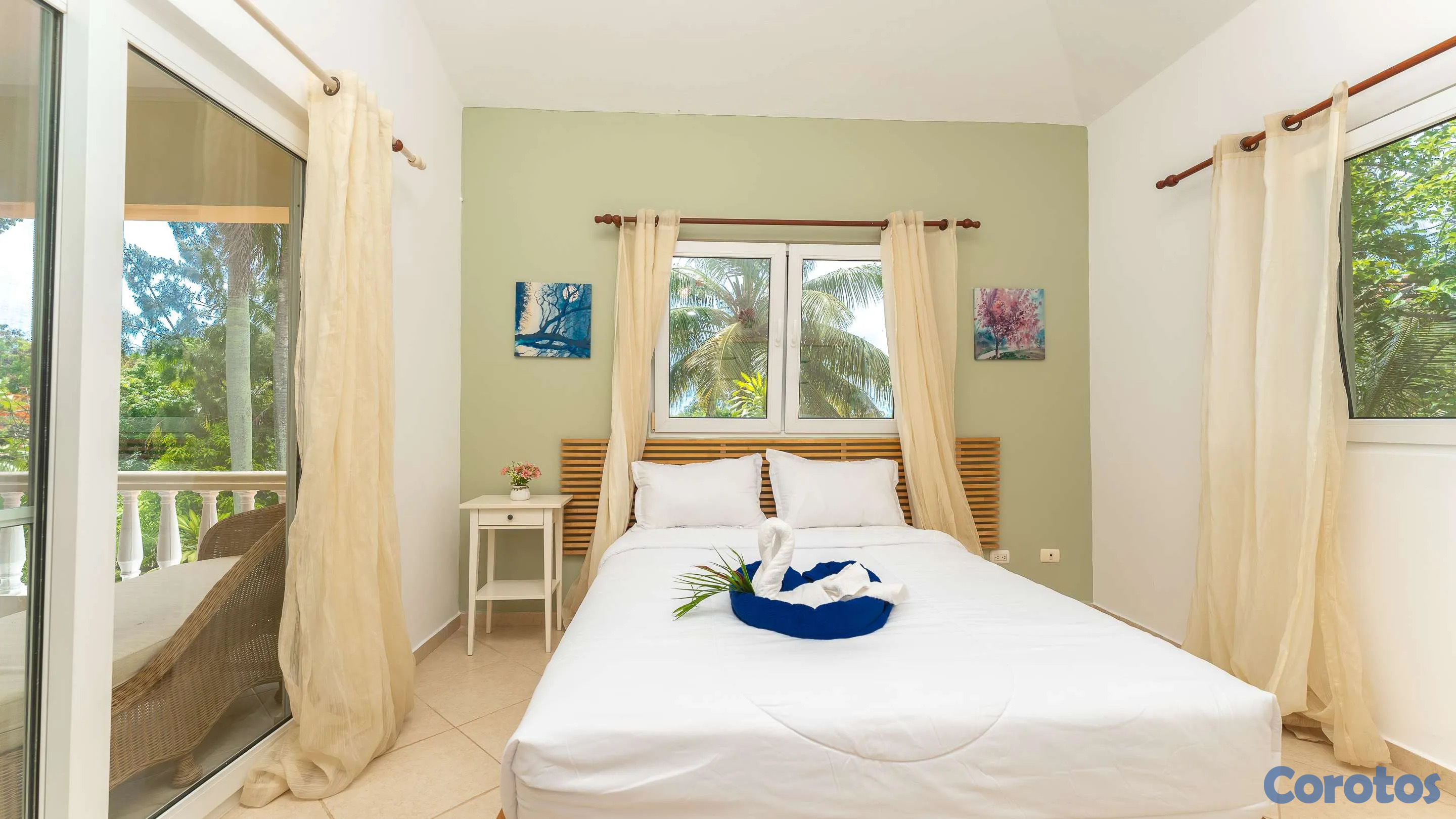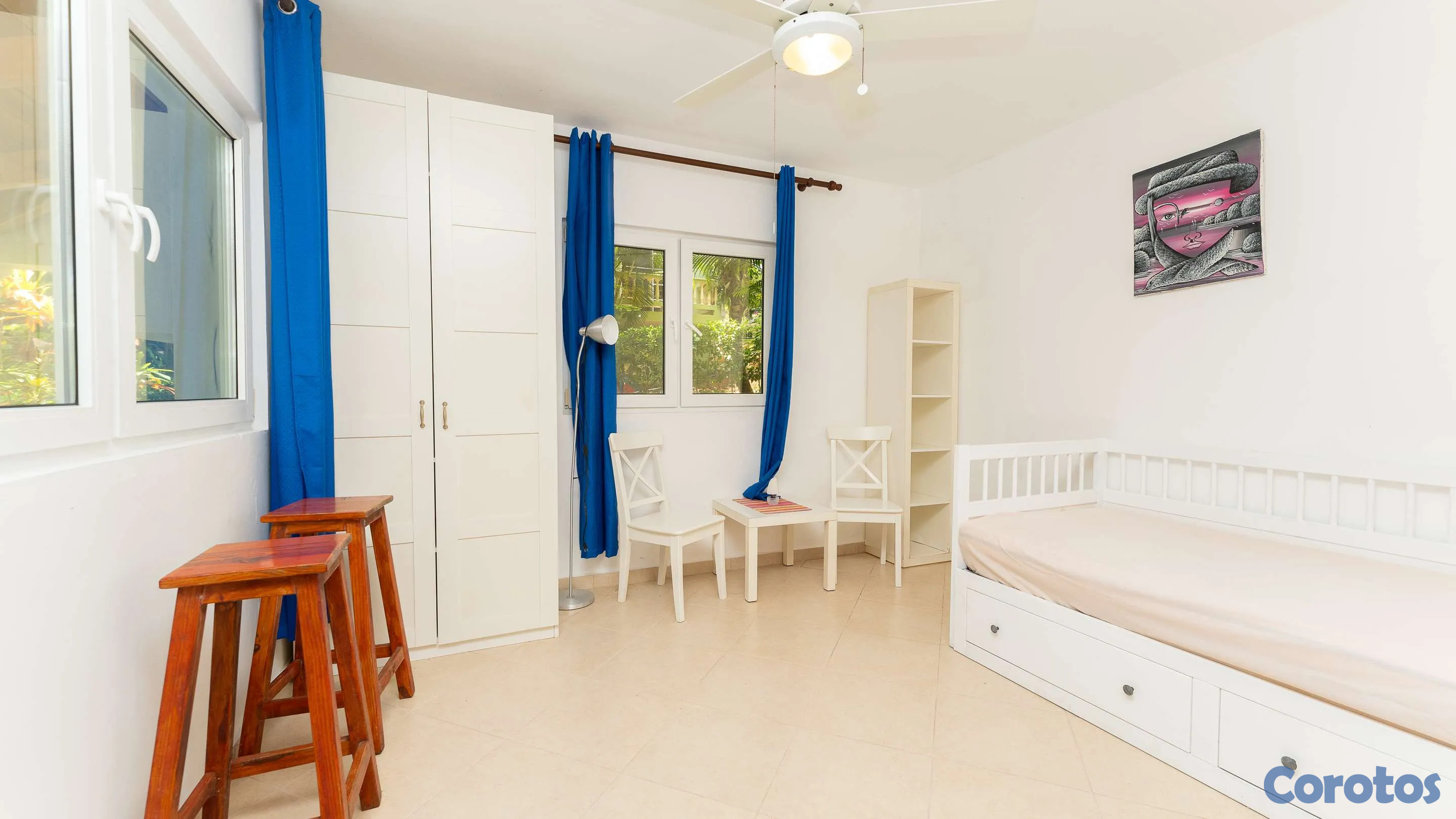 Ubicada cerca de la entrada de Residencial Hispaniola, esta acogedora villa de dos dormitorios es ideal para personas solas, parejas, familias jóvenes o como propiedad de alquiler. Cuenta con cocina y sala de estar con una amplia zona de estar en la terraza cubierta. El dormitorio principal incluye baño en suite y una puerta corredera que da directamente a la terraza. El segundo dormitorio se encuentra cerca del baño principal. Ambos dormitorios cuentan con armarios empotrados, aire acondicionado y ventiladores de techo. La piscina privada y el amplio jardín ofrecen una escapada relajante en un hermoso entorno tropical. Servicios de alquiler y administración disponibles en el lugar. Su pequeña villa en el paraíso