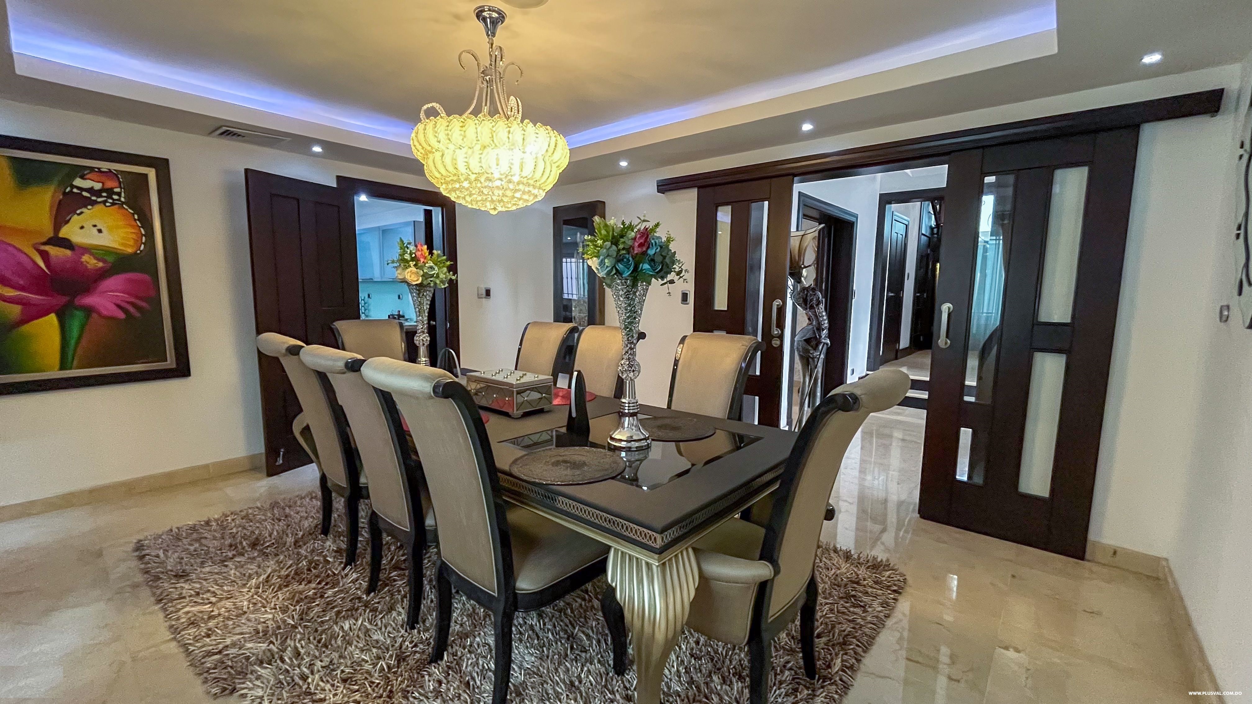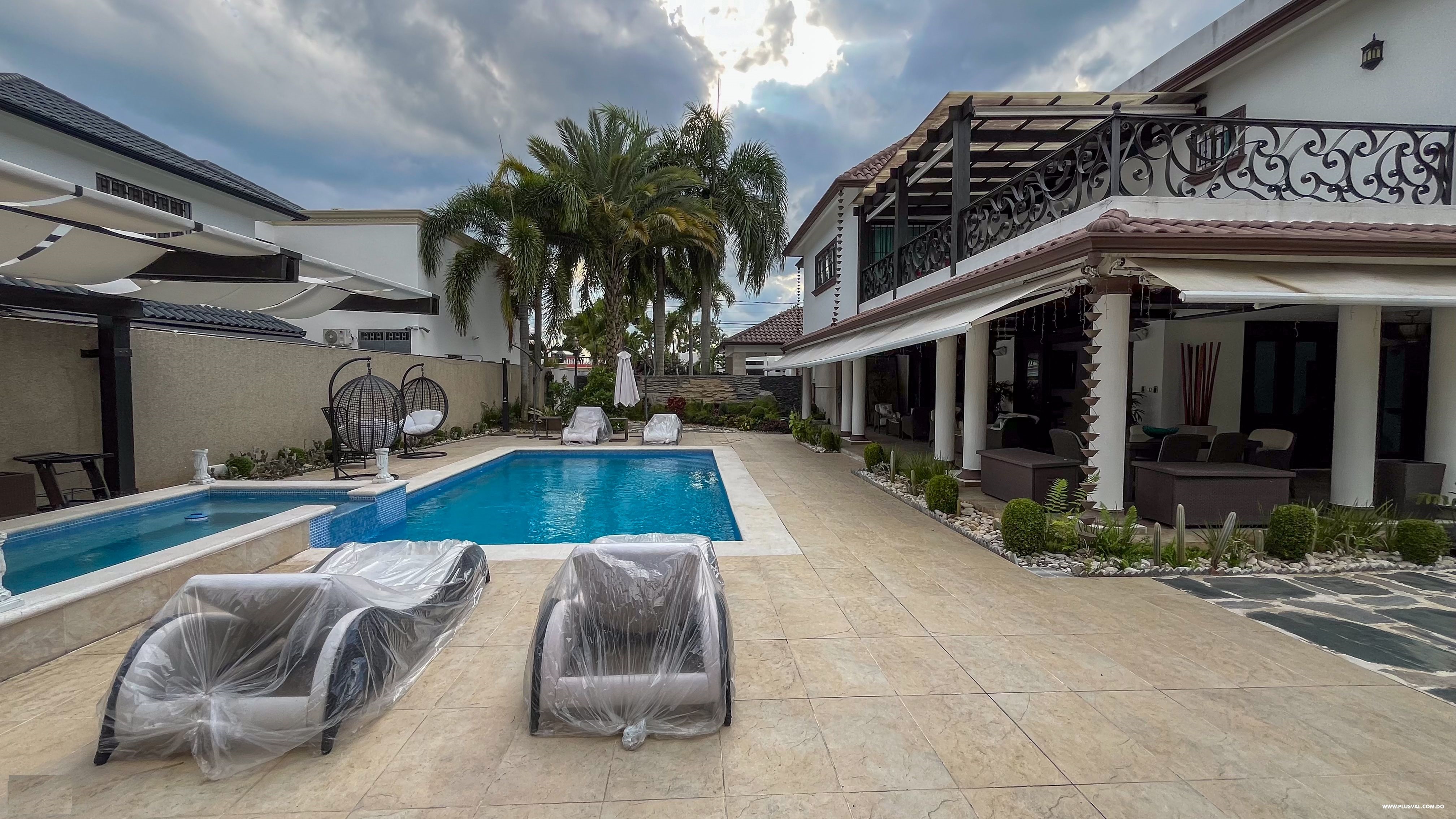 Consta de 1165 metros de solar y 900m2 de construcción, 4 habitaciones, 4.5 baños, 5 parqueos, estar, estudio, pisos de mármol, patio, piscina, family room, gazebo, gym, cuarto de servicio.