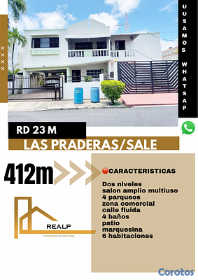 Excelente casa en venta , de dos niveles , con amplios espacios . Tiene marquesina, patio, , habitaciones en primer y segundo nivel, se presta para fines comerciales y residenciales.