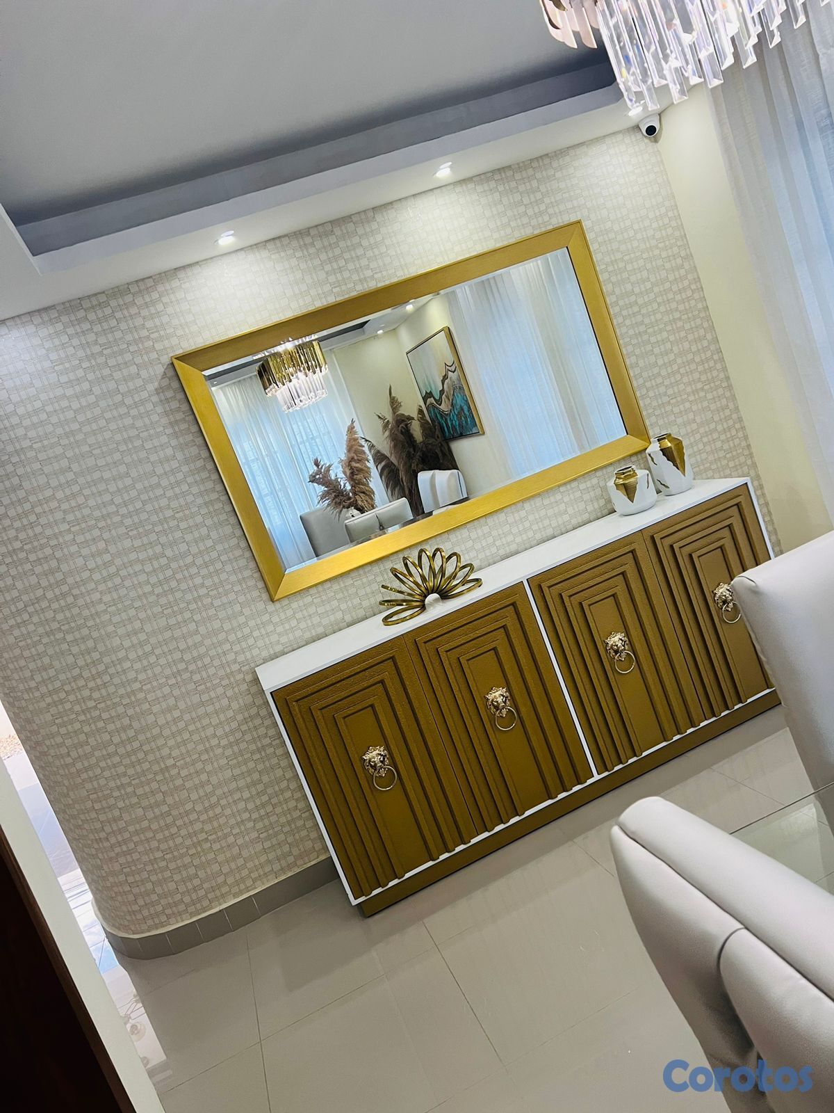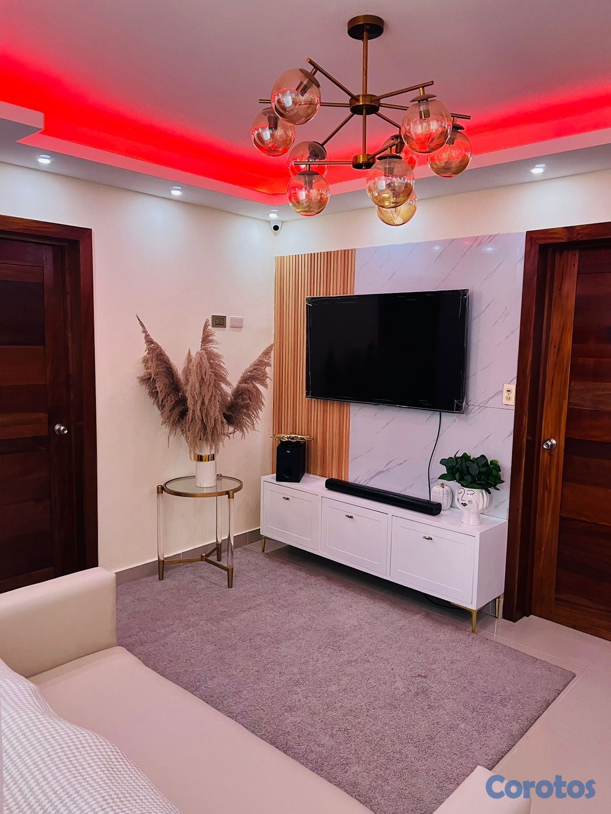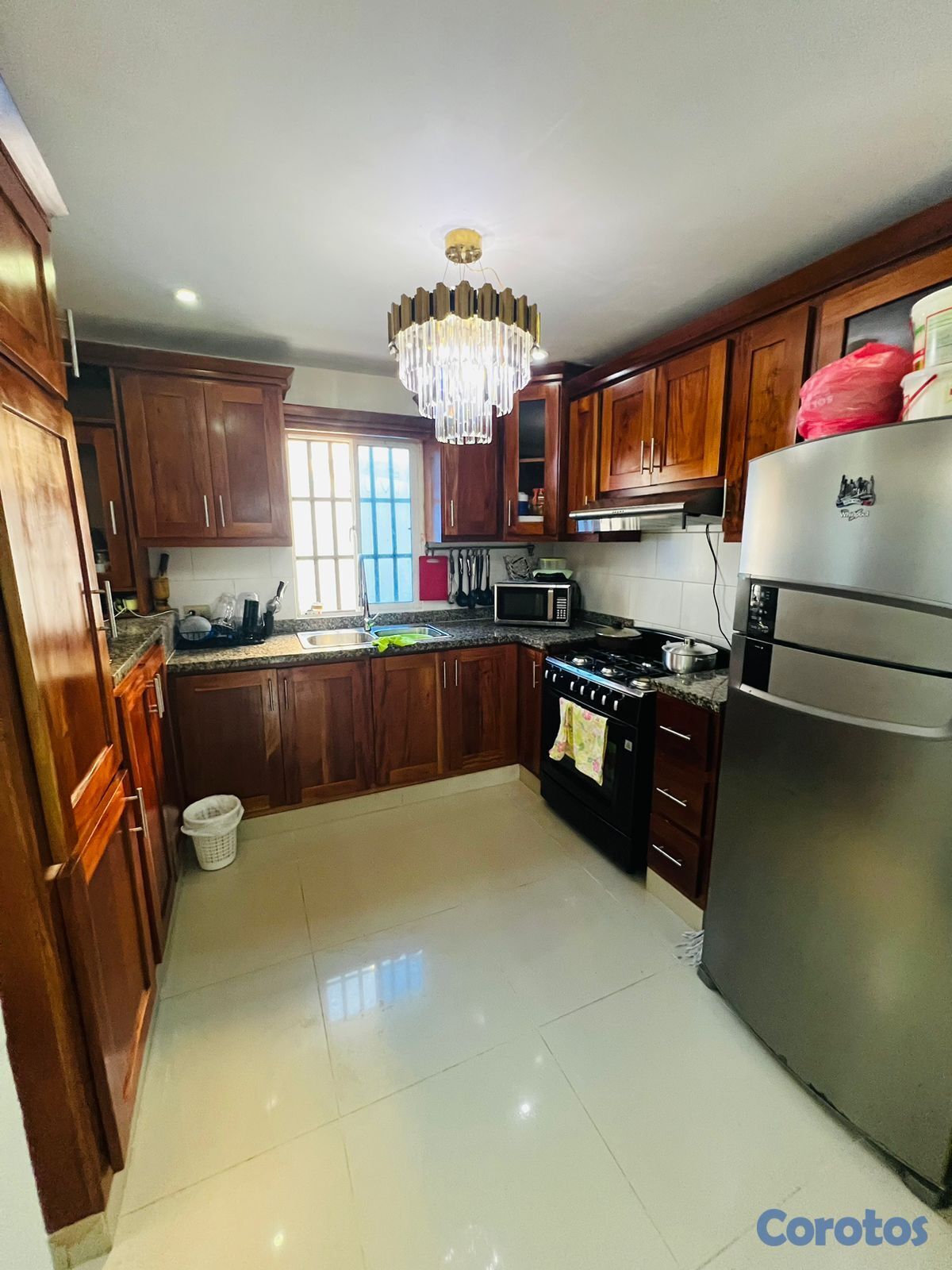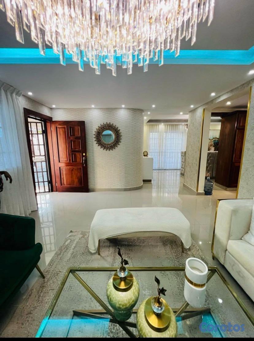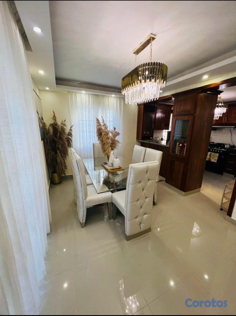 1 sala espaciosa ,1 área de comedor y desayunador , i cocina en madera preciosa tope granito natural, las puertas son en caoba.