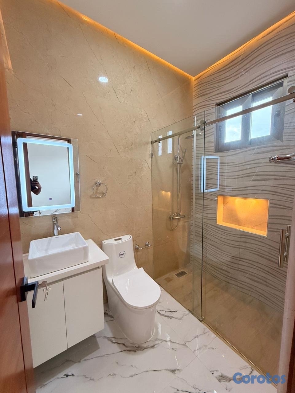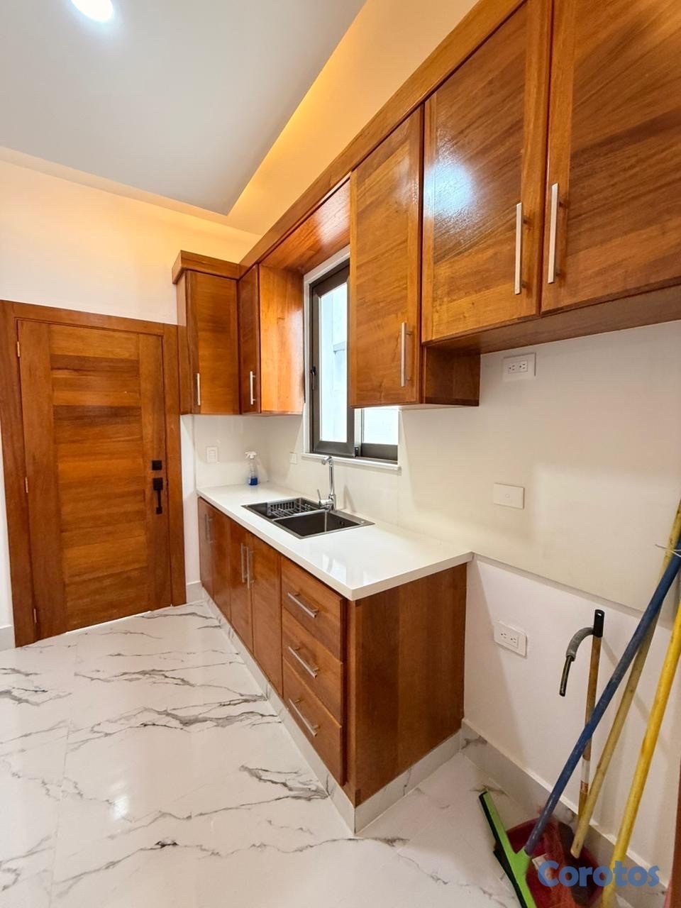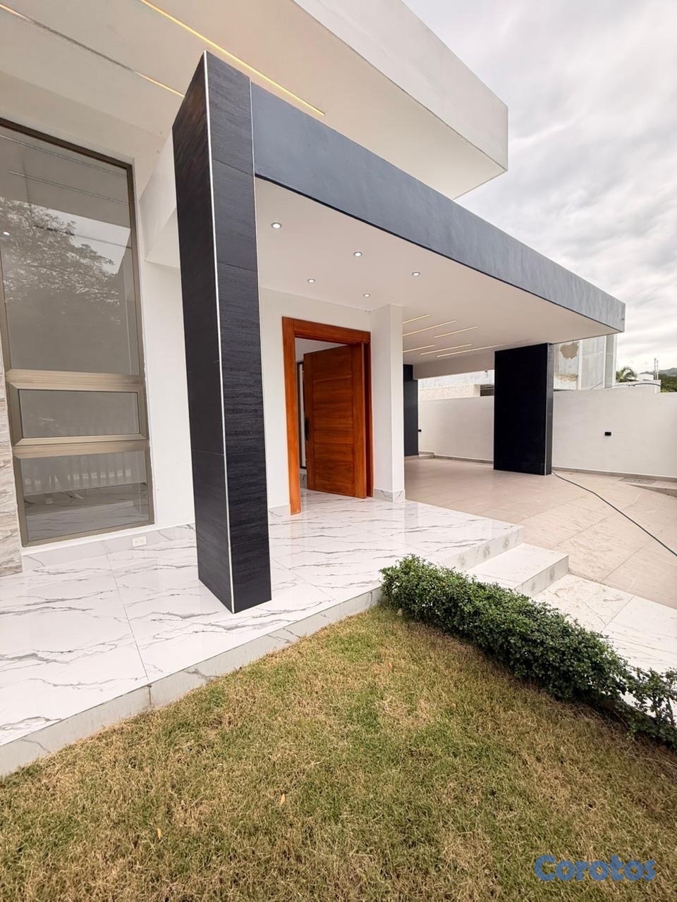 Dispone de 3 habitaciones, cada una con su baño y vestidor, cocina fría con isla, cocina caliente, comedor, medio baño para visitas, patio, terraza, área de lavado y marquesina doble con portón eléctrico. Además, incluye jardín frontal, puertas en roble africano, tope en cuarzo, techo en sheetrock y porcelanato español que elevan el nivel de terminación.