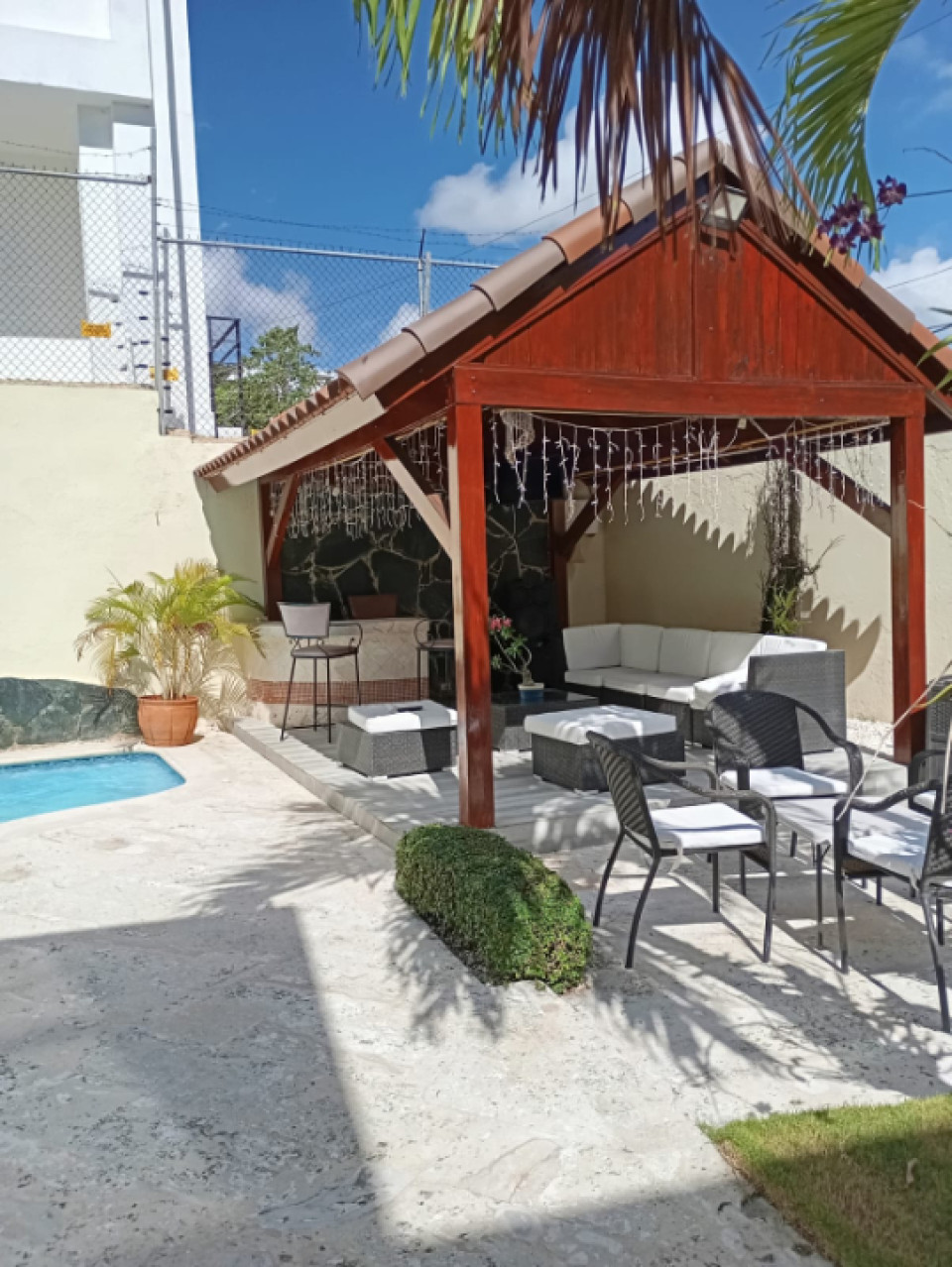 Descubre esta impresionante casa en el prestigioso sector de Arroyo Hondo, Santo Domingo. Con 335 metros cuadrados de construcción y 535 metros cuadrados de terreno, esta propiedad ofrece un espacio amplio y cómodo. Cuenta con 5 habitaciones, 7 baños y 5 parqueos. Disfruta de sus elegantes áreas como galería, recibidor, sala, comedor, y family room. La cocina está equipada con pantry y desayunador. Además, cuenta con gazebo, BBQ, piscina y patio. La casa está equipada con luz trifásica, planta eléctrica full, A/C split, y portón eléctrico, garantizando comodidad y seguridad.