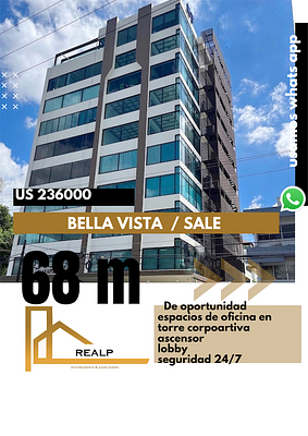 Espacios para oficina en torre corporativa en venta , áreas comunes , ascensor d e ultima generación, recepción y lobby , pasillos comunes climatizados , seguridad 24/7, conserje , área de parqueos disponibles (para alquiler o venta )