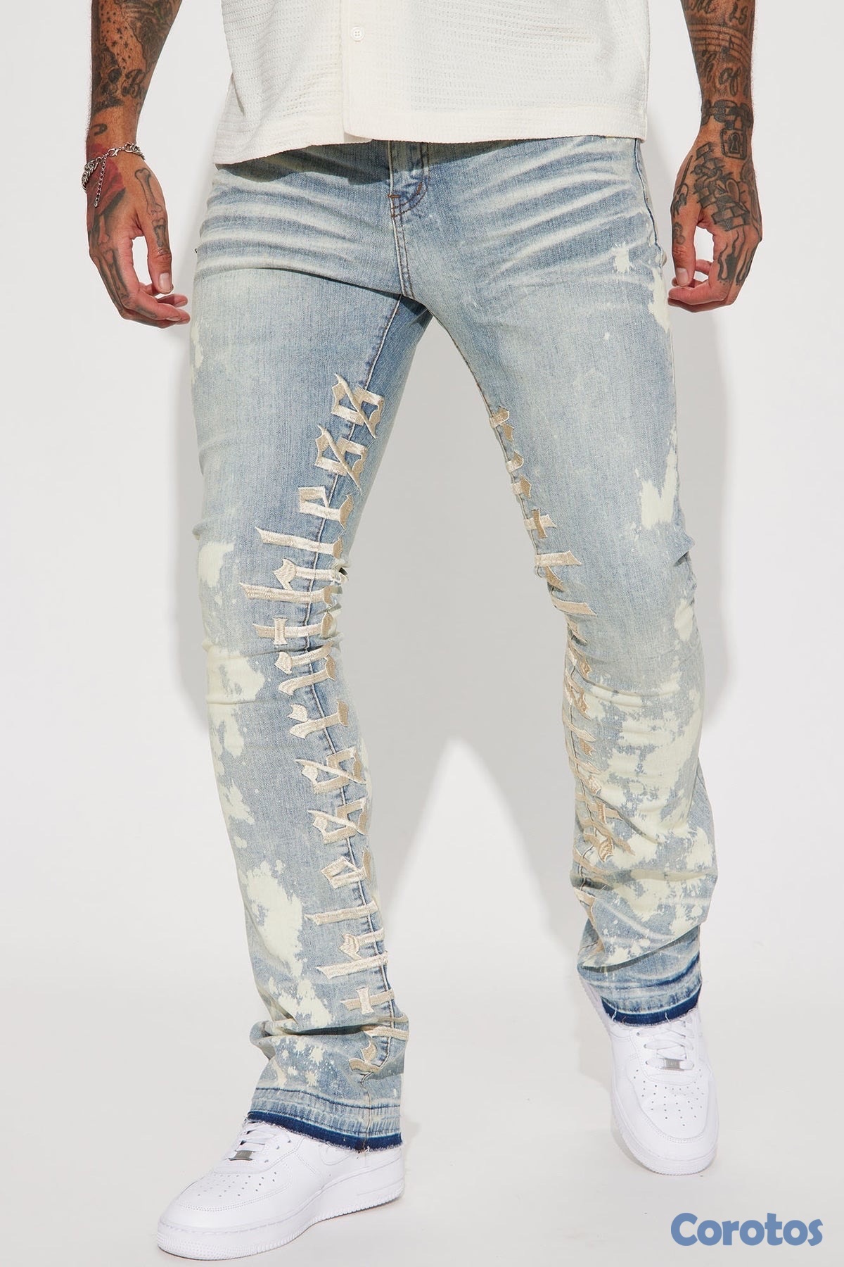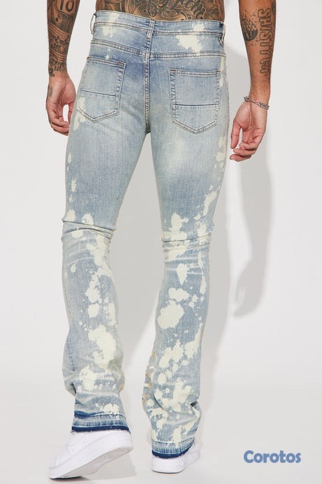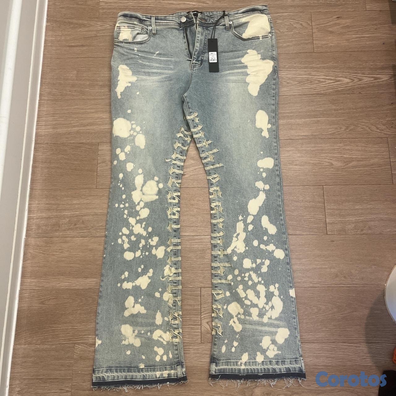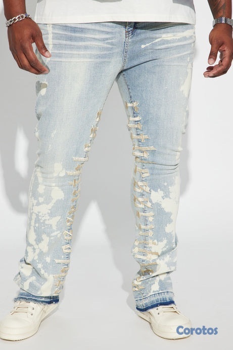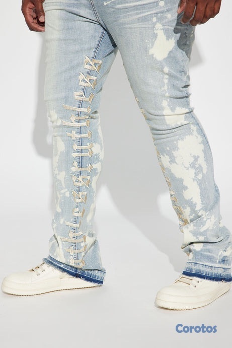 Pantalón De Mezclilla Apilado Pierna Ancha Ruthless Embroidered - Lavado Azul Blanqueador - Talla 42
