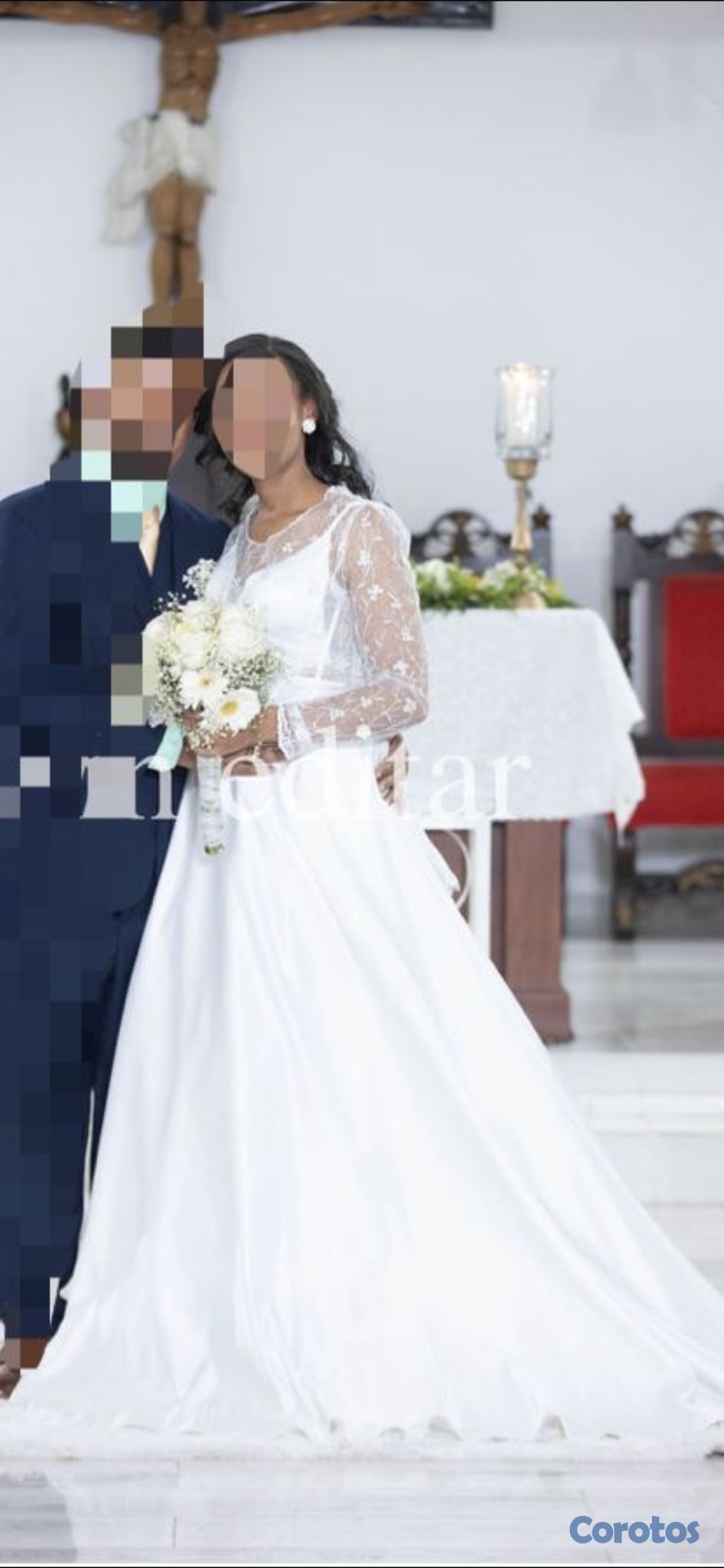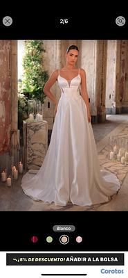 Es mi vestido de novia solo usado en la boda. Incluyó velo, chaleco de encaje, zapatos size 8 y cretona