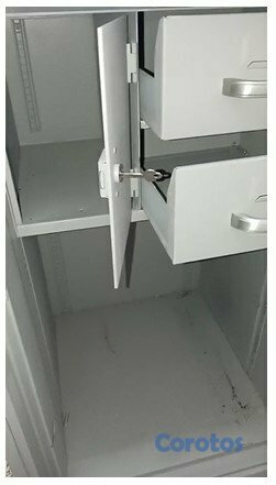 Condición: Usada, pero en excelente estado funcional. Pintura gris original bien conservada, cerradura funciona perfectamente, sin daños estructurales. Construcción en acero reforzado de alta resistencia. Lista para usar inmediatamente. Diseño ignífugo (fireproof), ideal para proteger contenido en caso de incendio. Manija robusta y puerta pesada para máxima seguridad antirrobo, garantía de solidez.