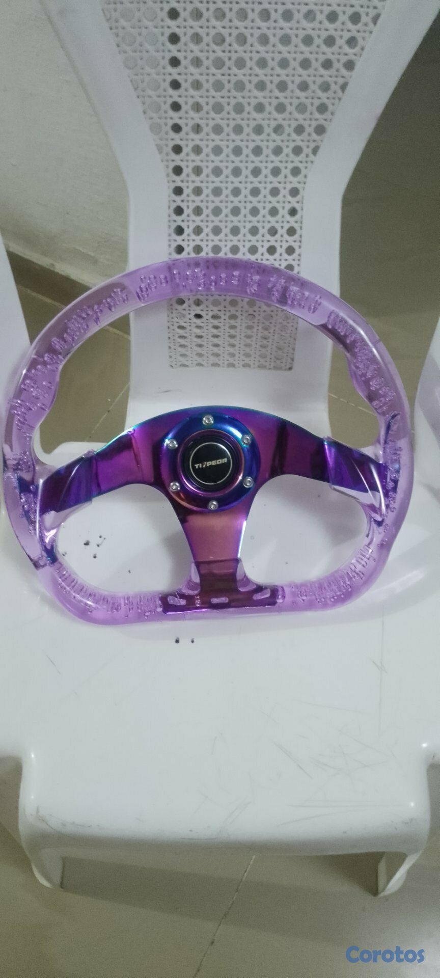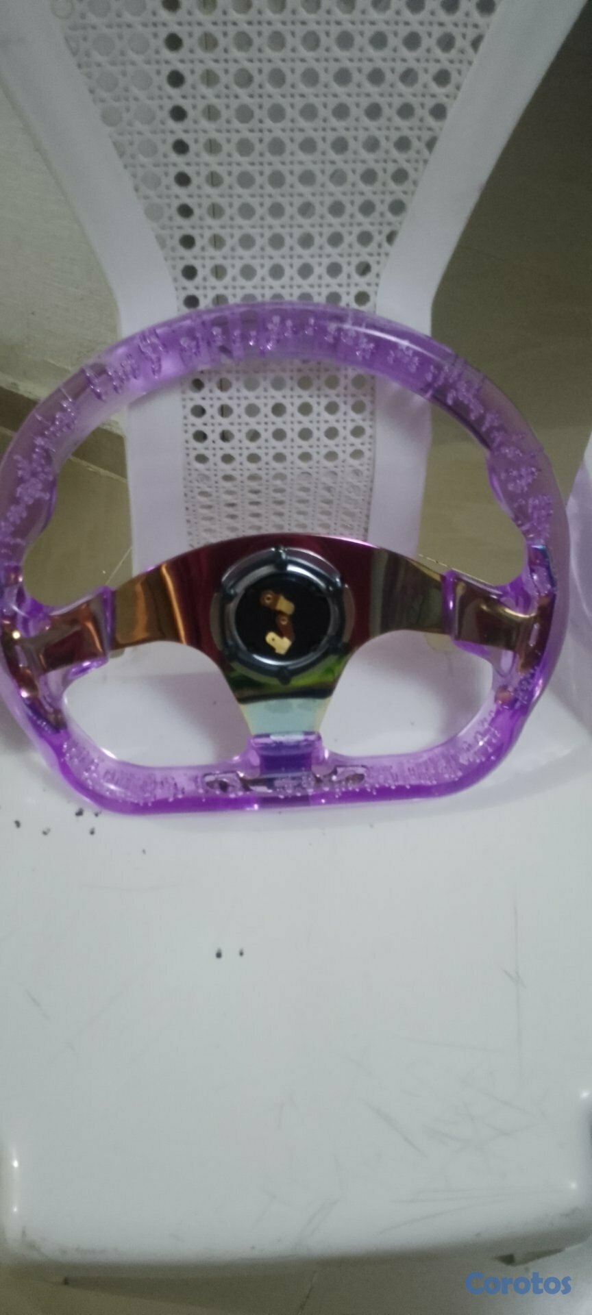Volante de auto movil en venta 2500 echo en acrílico más luz led que encienden el volante precioso